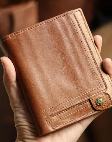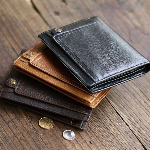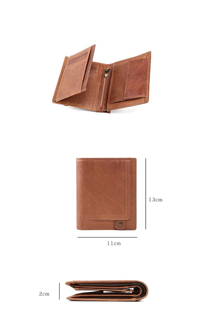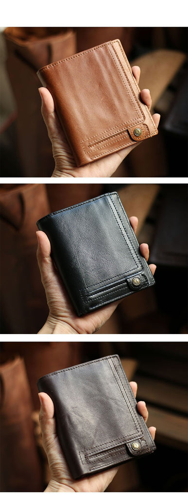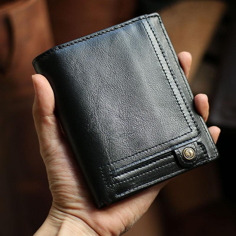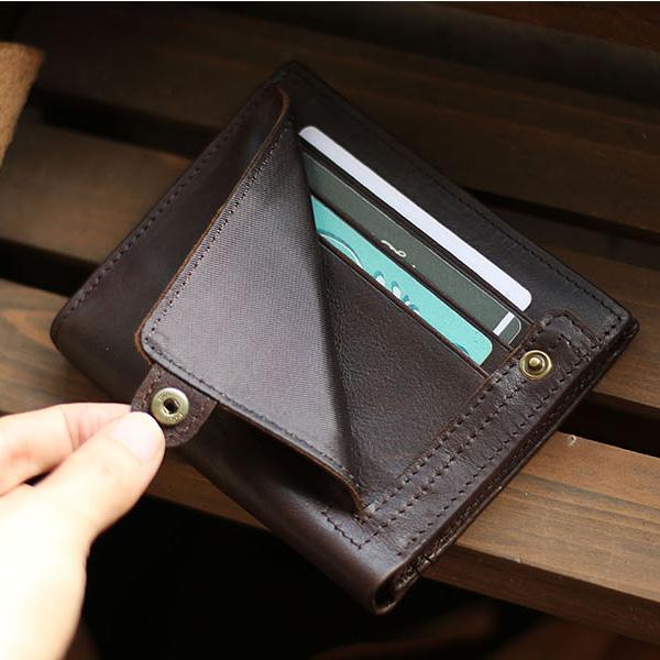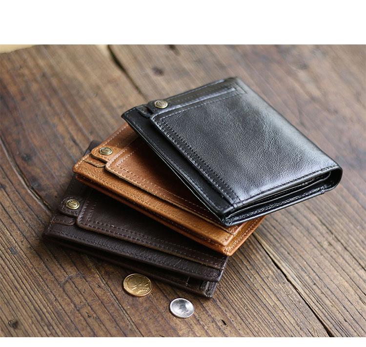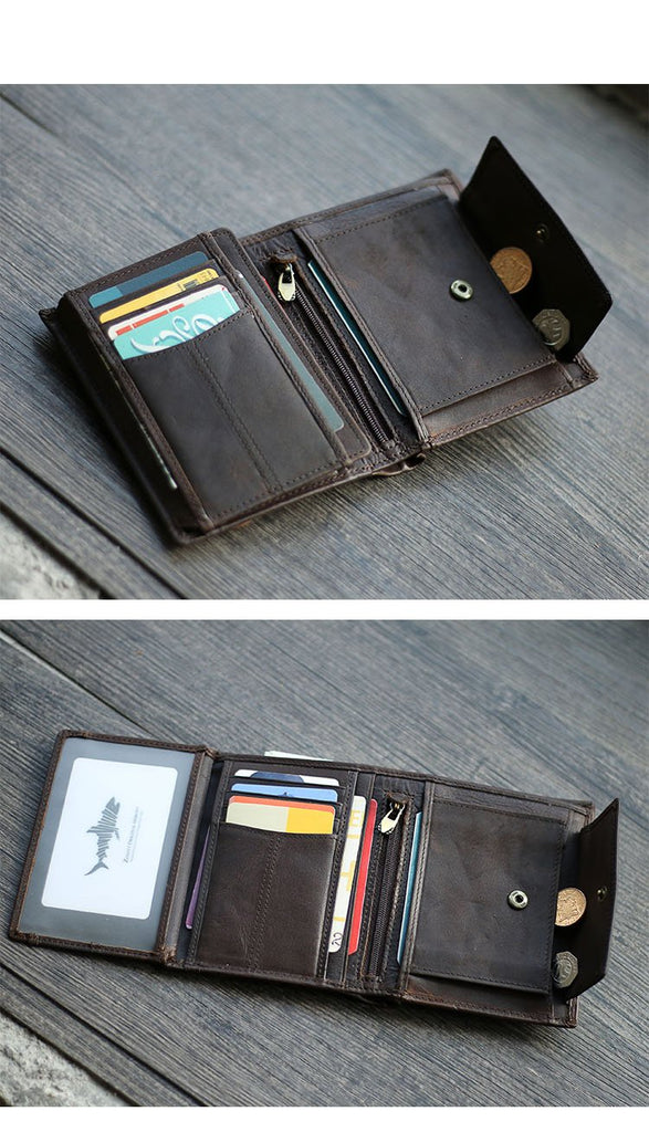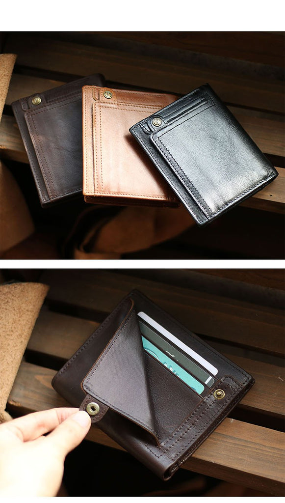 Style: Casual Brown Leather Mens billfold Wallet Trifold SMall Wallet Black Front Pocket Wallet For Men