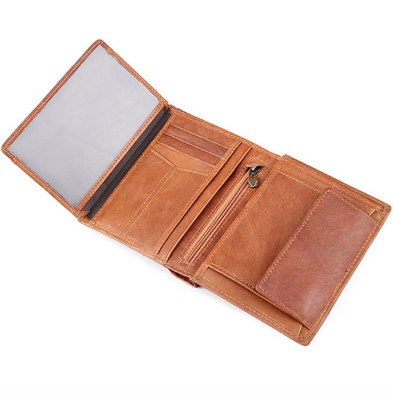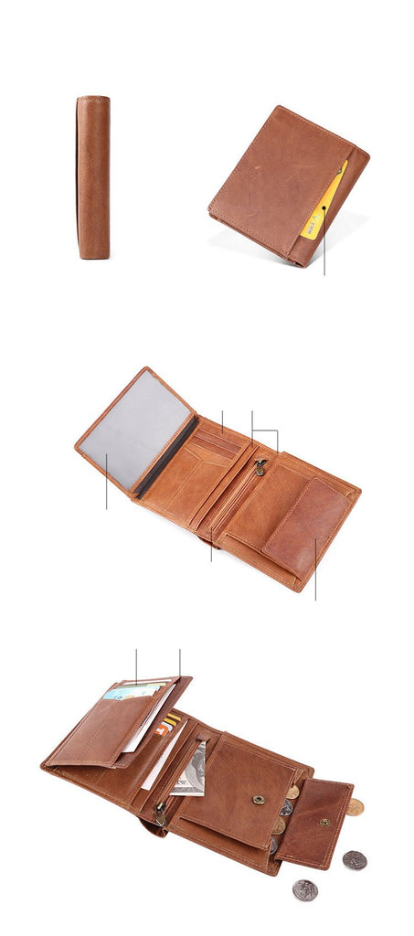Design: Casual Brown Leather Mens billfold Wallet Trifold SMall Wallet Black Front Pocket Wallet For Men