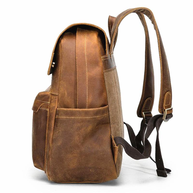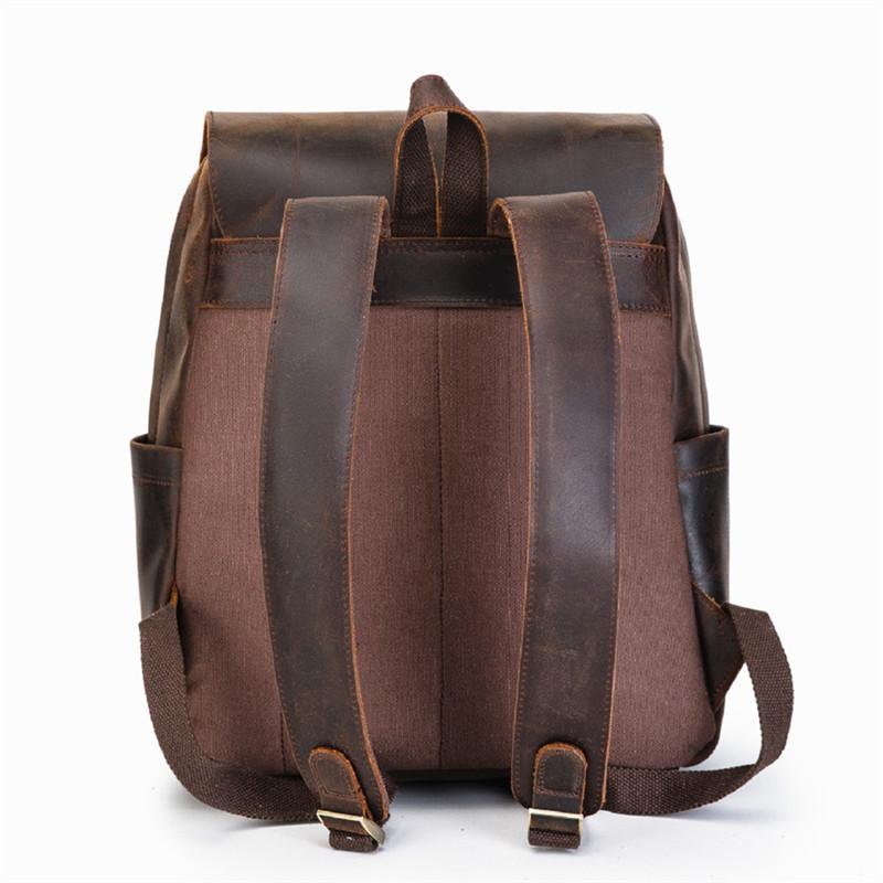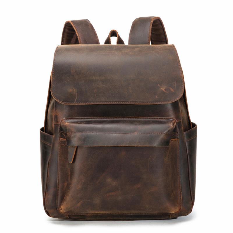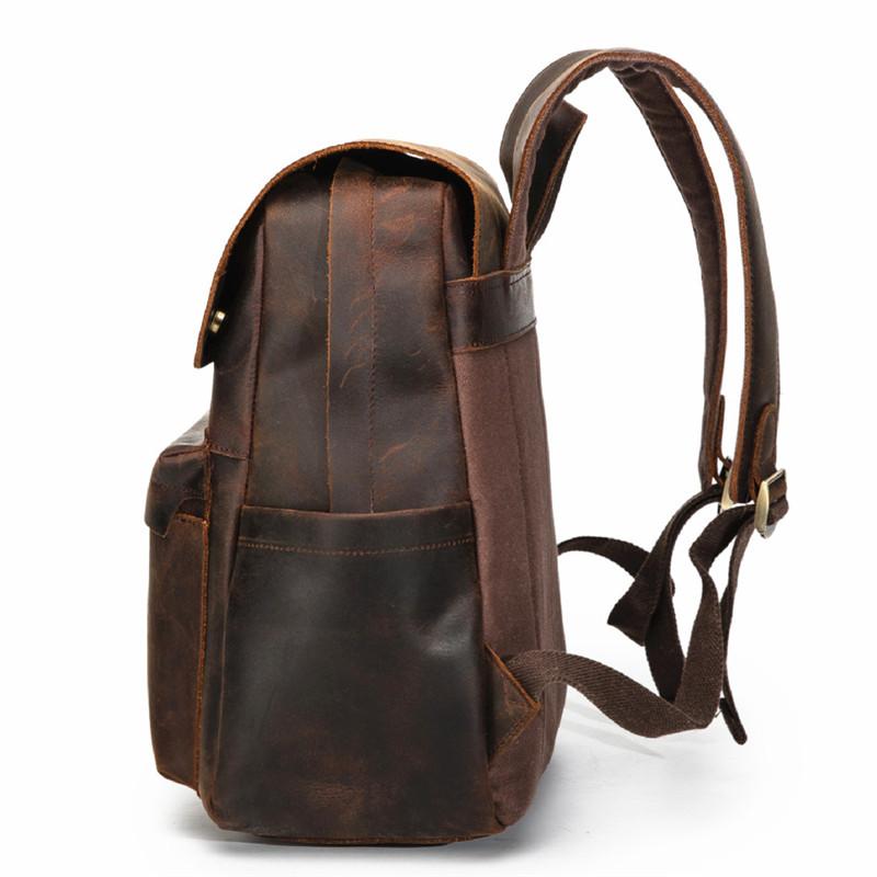 Design: Casual Brown Mens Leather 14 inches School Backpack Travel Backpack Dark Brown Computer Backpack For Men