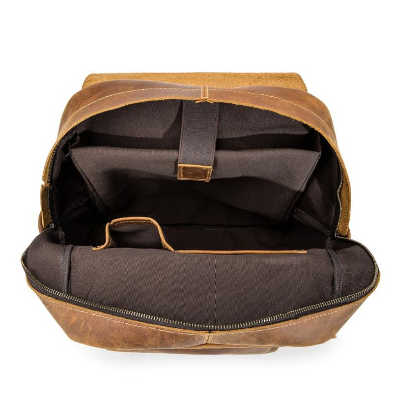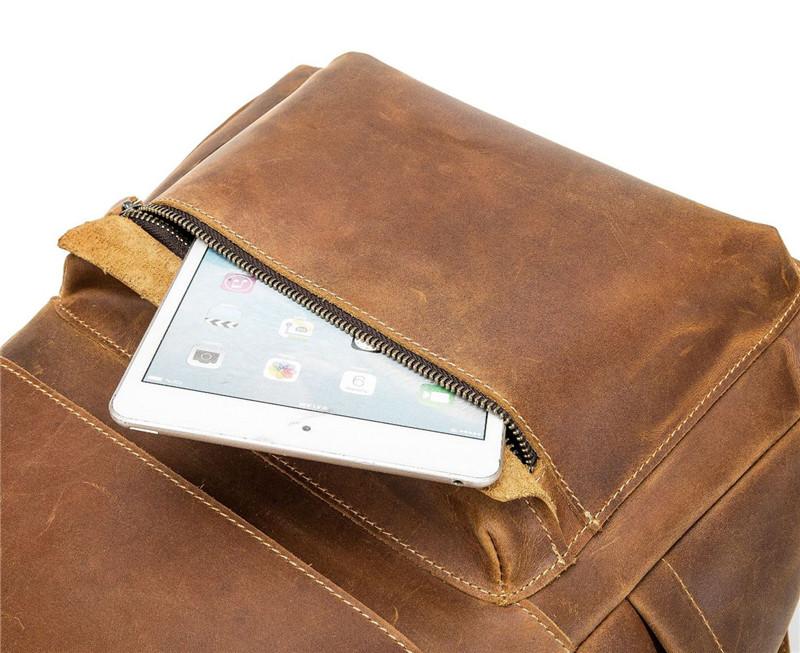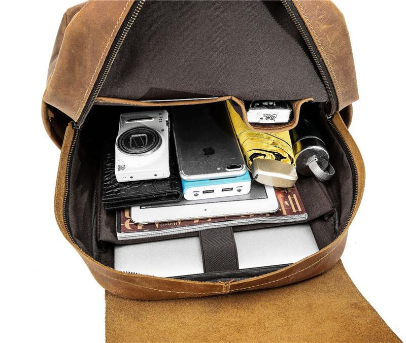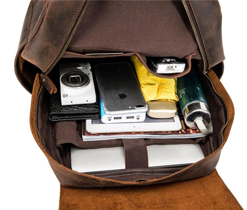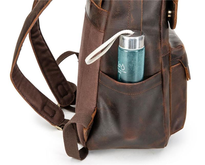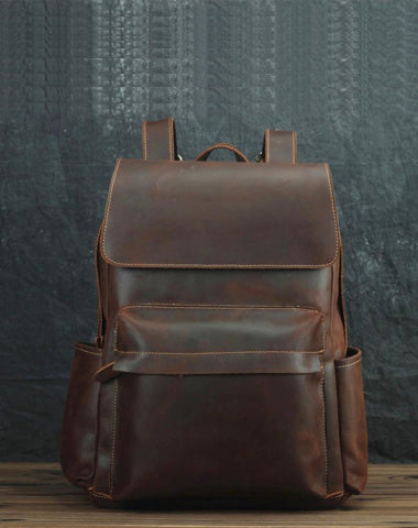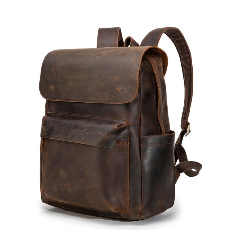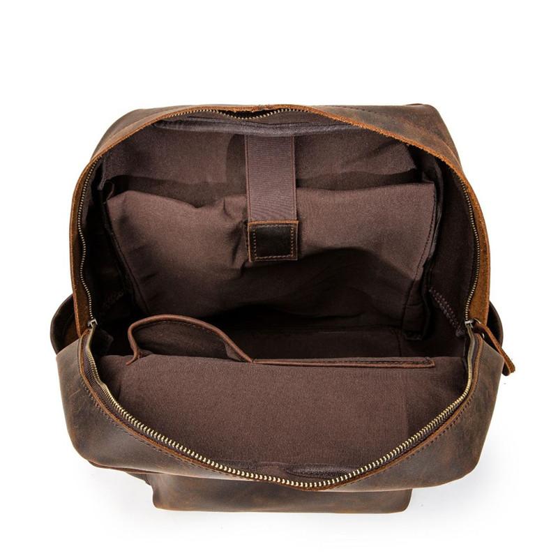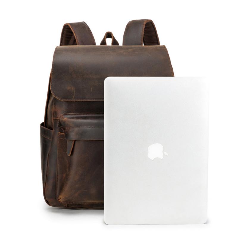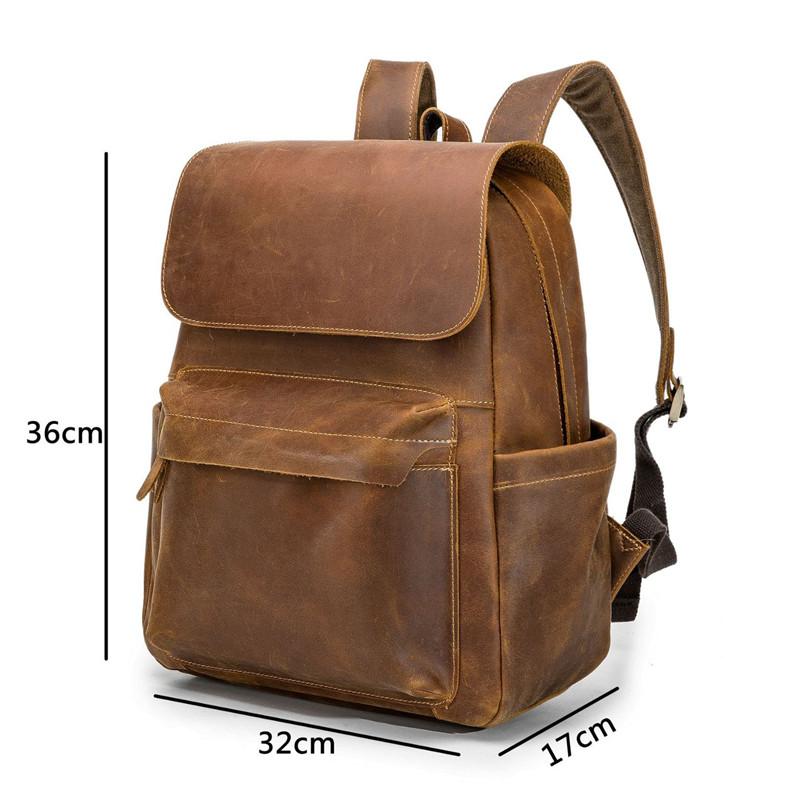 Design: Casual Brown Mens Leather 14 inches School Backpack Travel Backpack Dark Brown Computer Backpack For MenOverview: