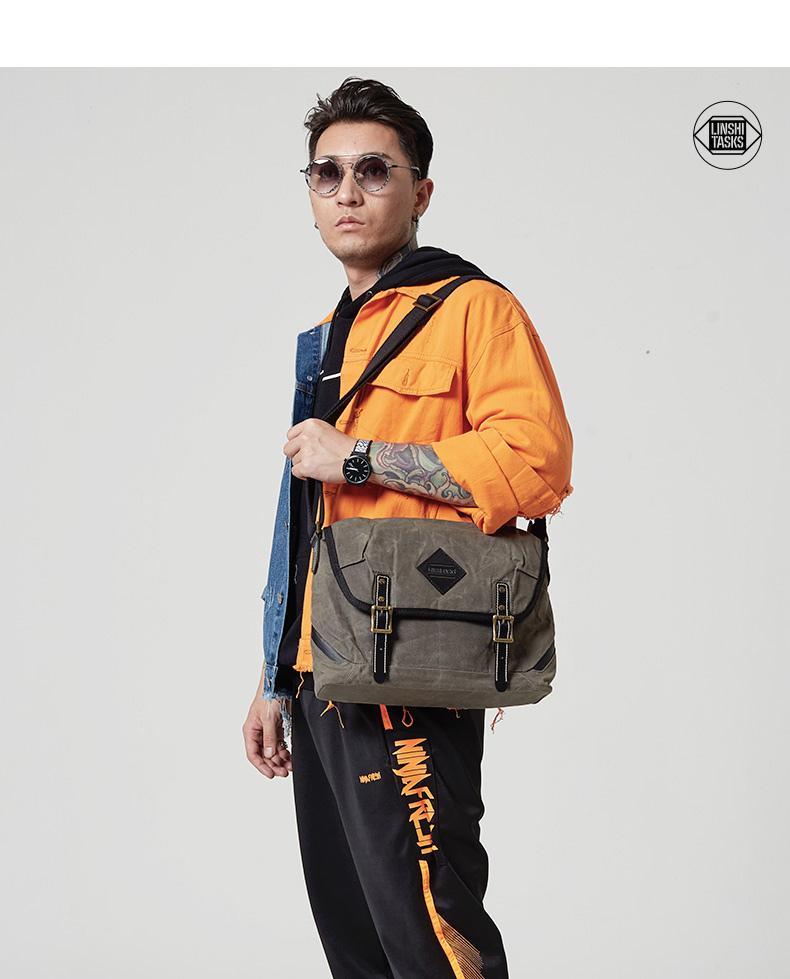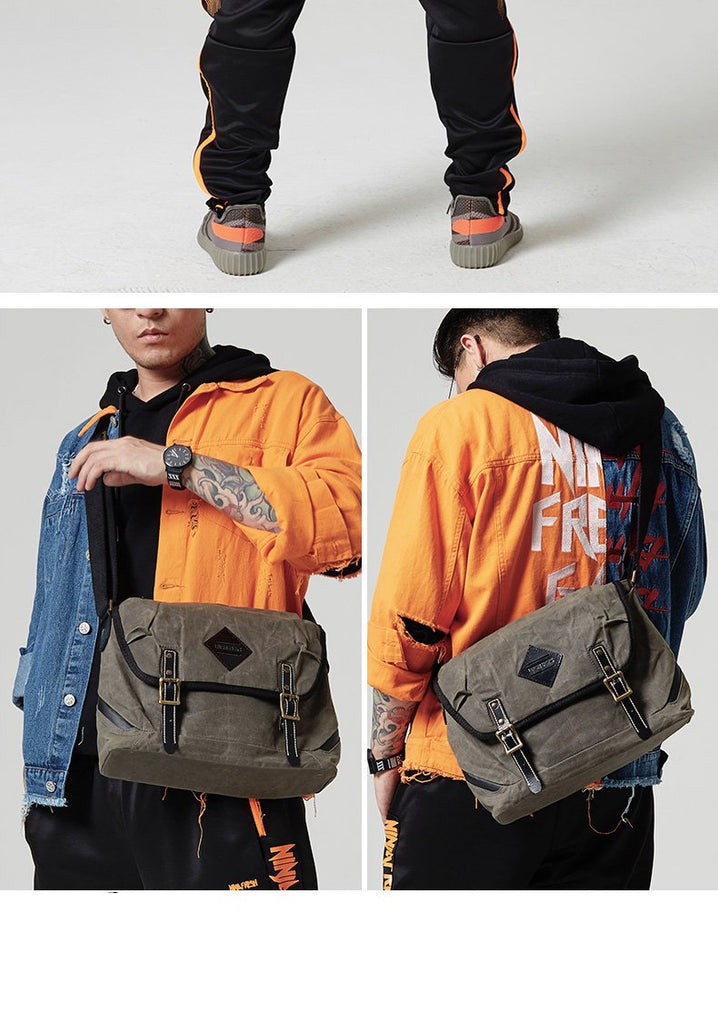 Design: Casual Canvas Leather Mens Navy Side Bag Side Bag Small Messenger Bags Casual Courier Bags for Men