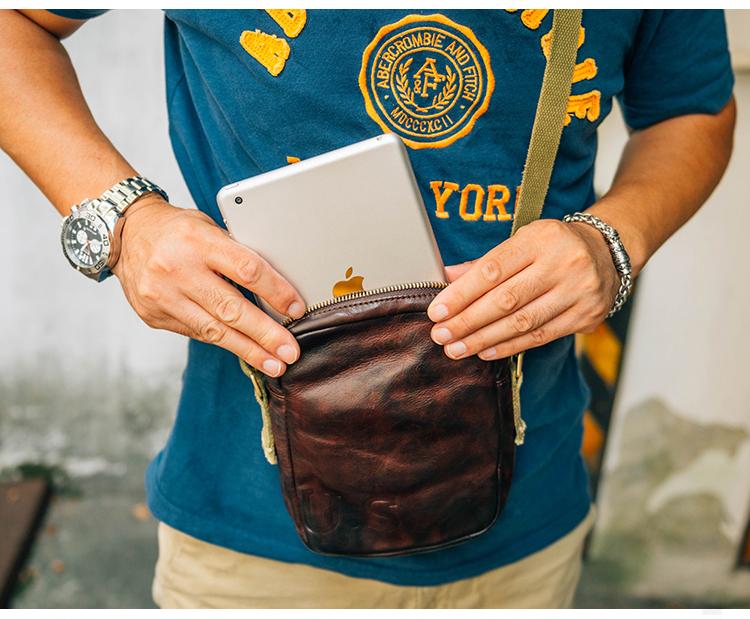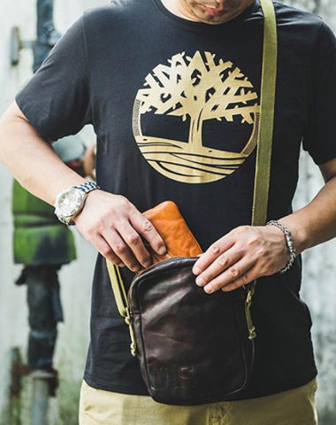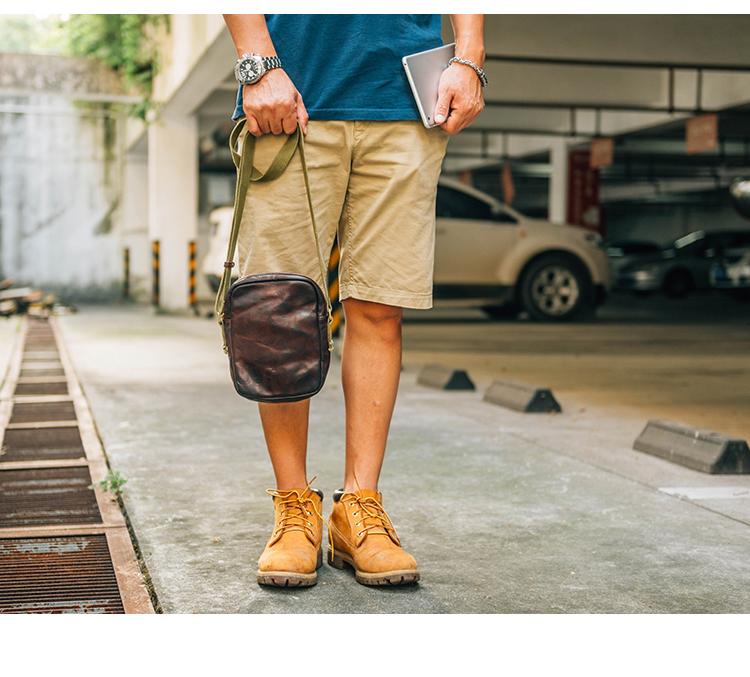 Style: Casual Coffee Leather Men Vertical Side Bag Green Small Messenger Bag Black Courier Bag For Men