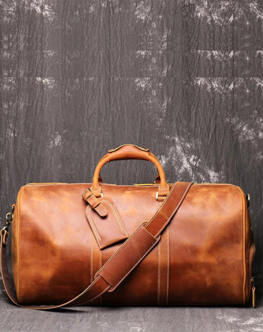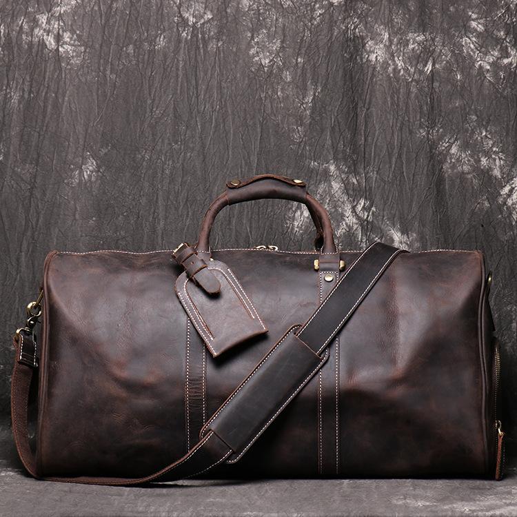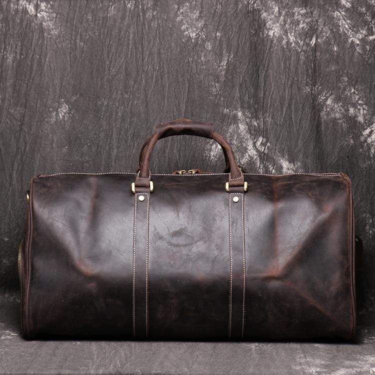 Design: Casual Dark Brown Leather Men Brown 16 inches Handbag Overnight Bags Travel Bags Weekender Bags For Men