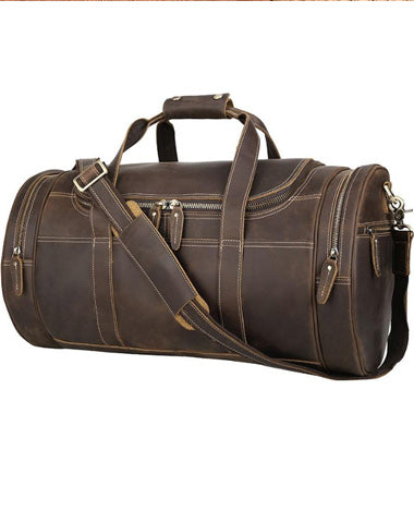 Design: Casual Dark Brown Leather Men's Large Overnight Bag Travel Bag Luggage Weekender Bag For MenOverview: