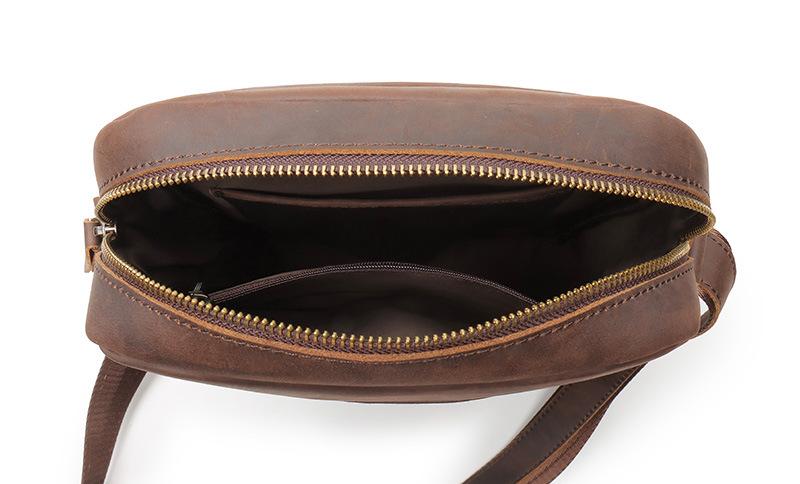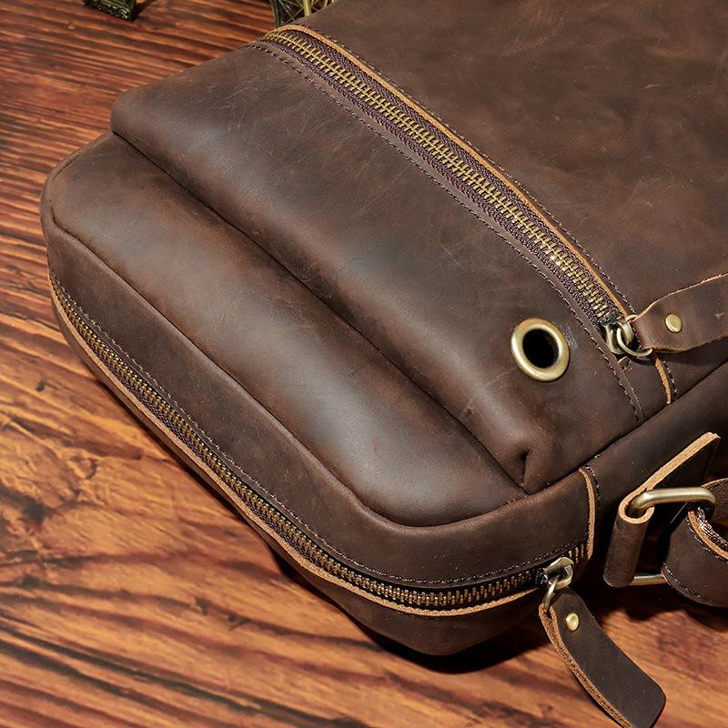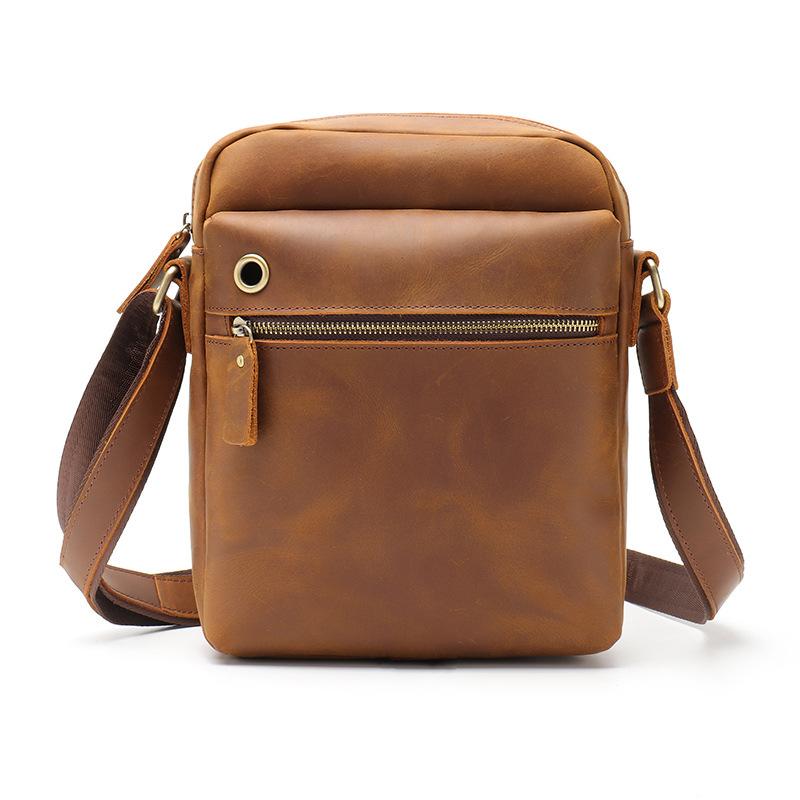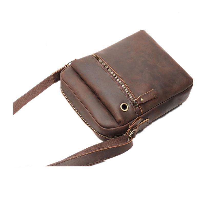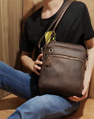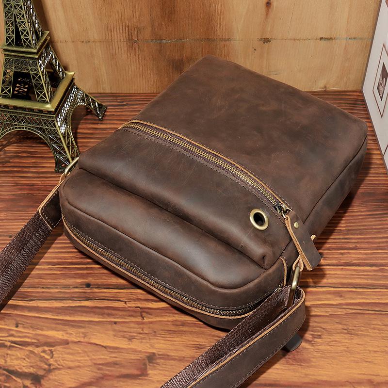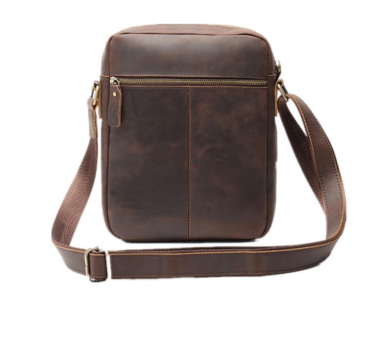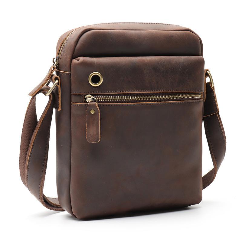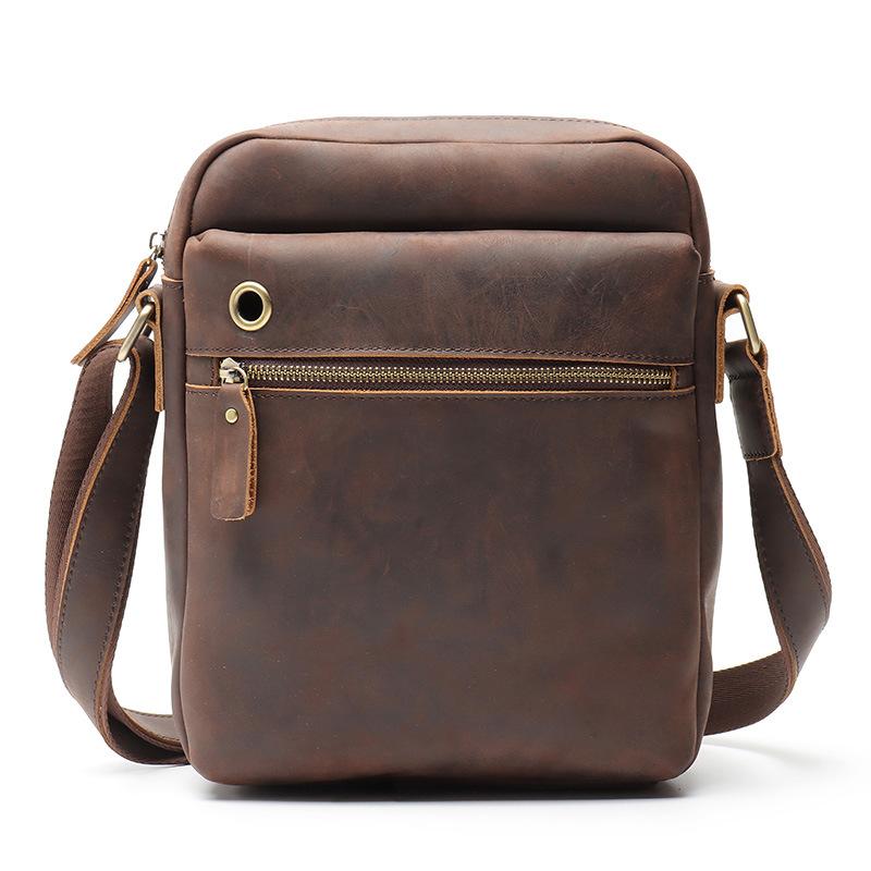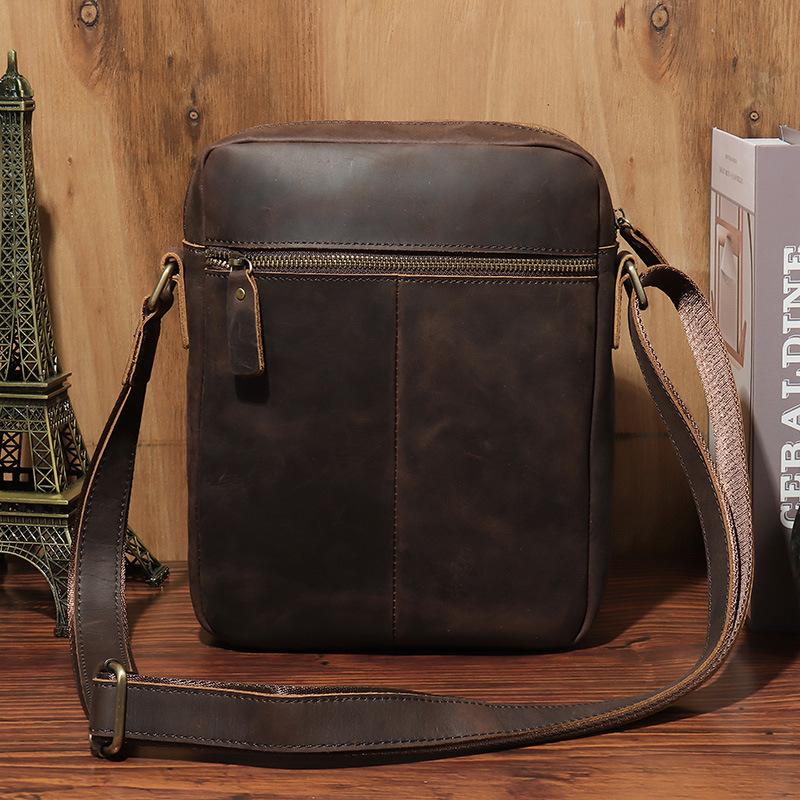 Design: Casual Dark Coffee Leather Messenger Bag Men's 8 inches Side Bag Vertical Phone Bag Courier Bag For MenOverview: