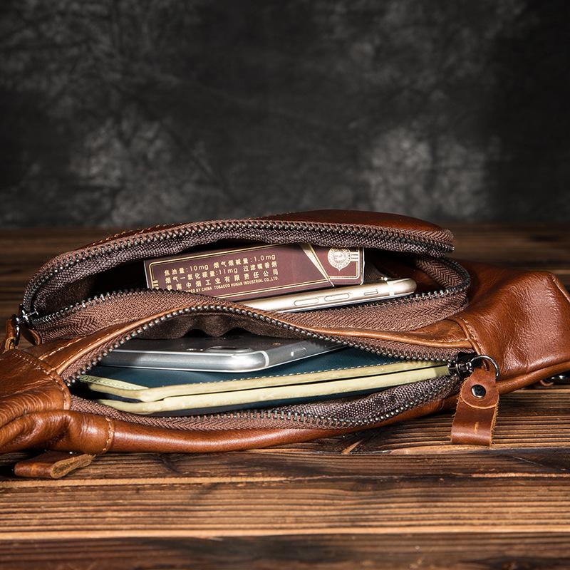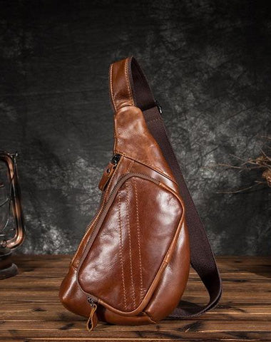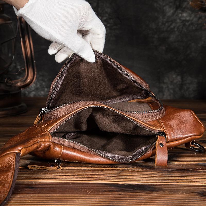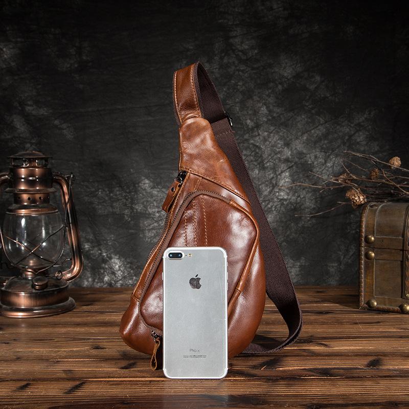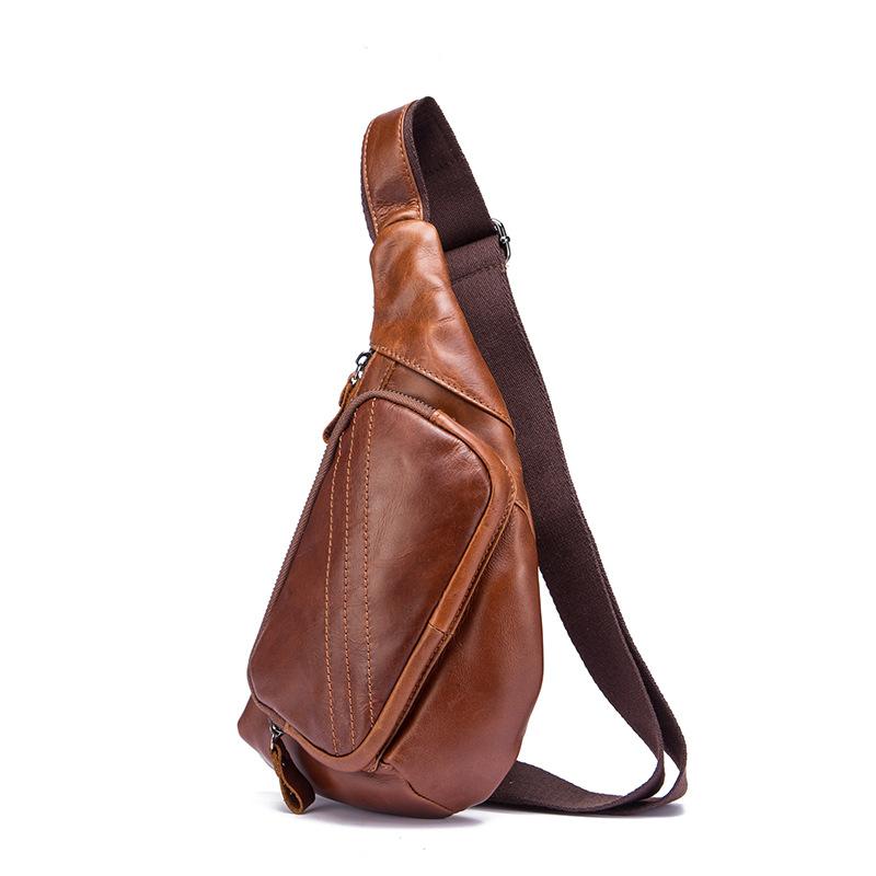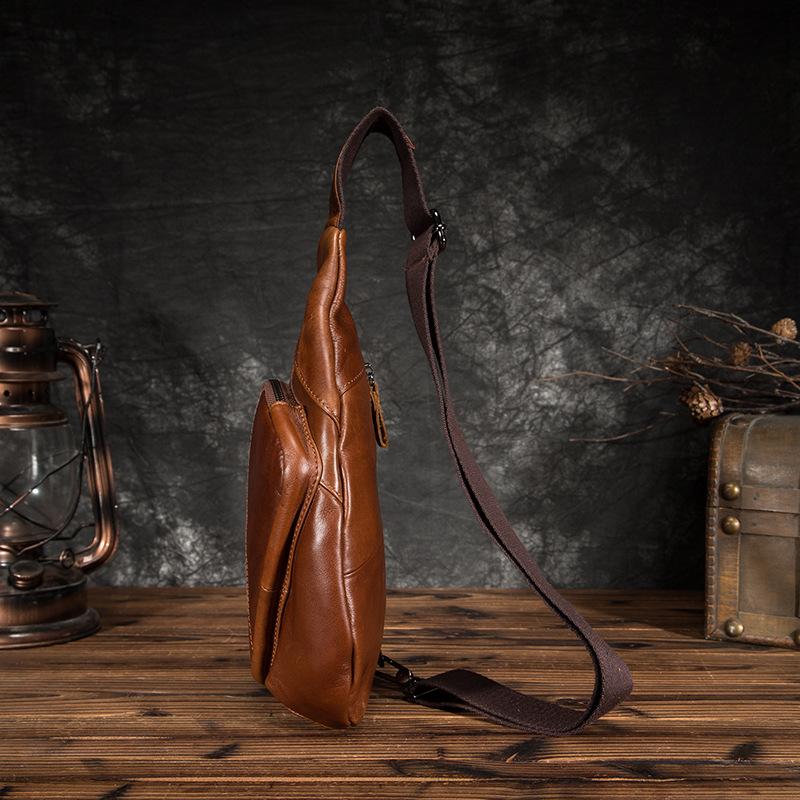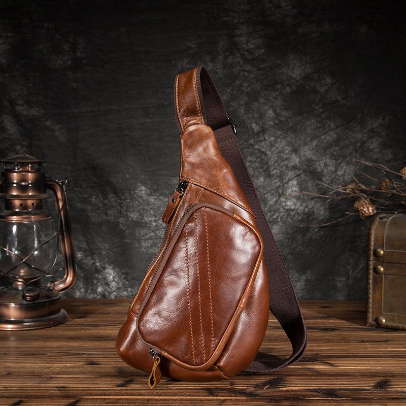 Design: Cool Brown Leather Men's Sling Bag Chest Bag One Shoulder Backpack For Men