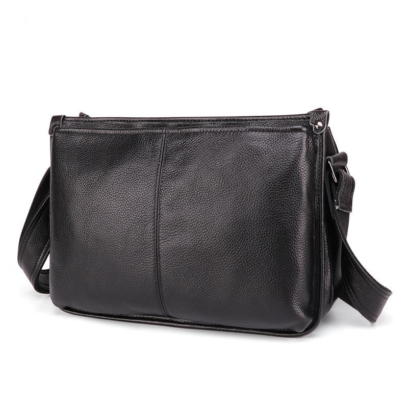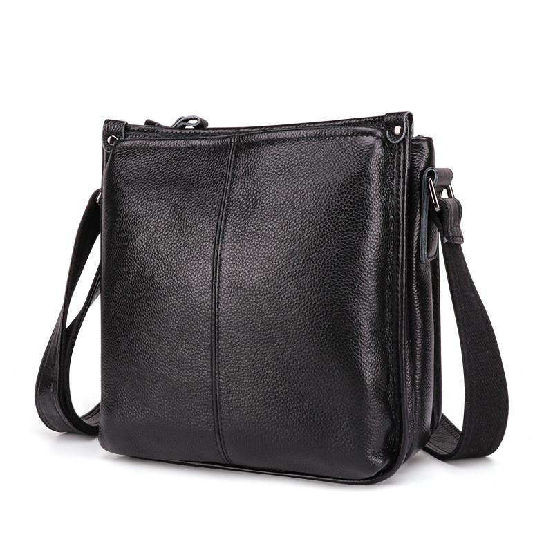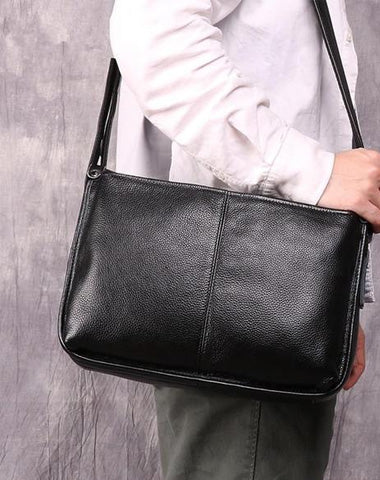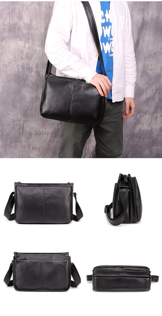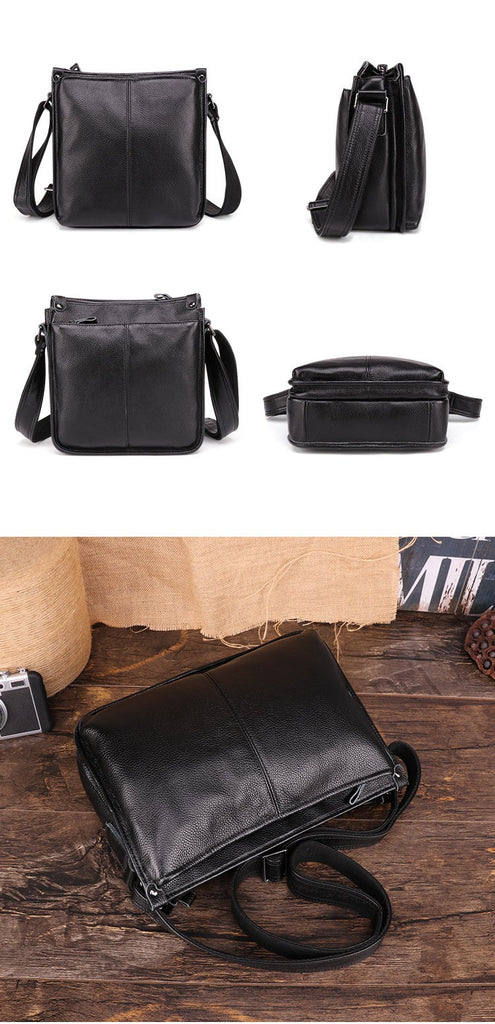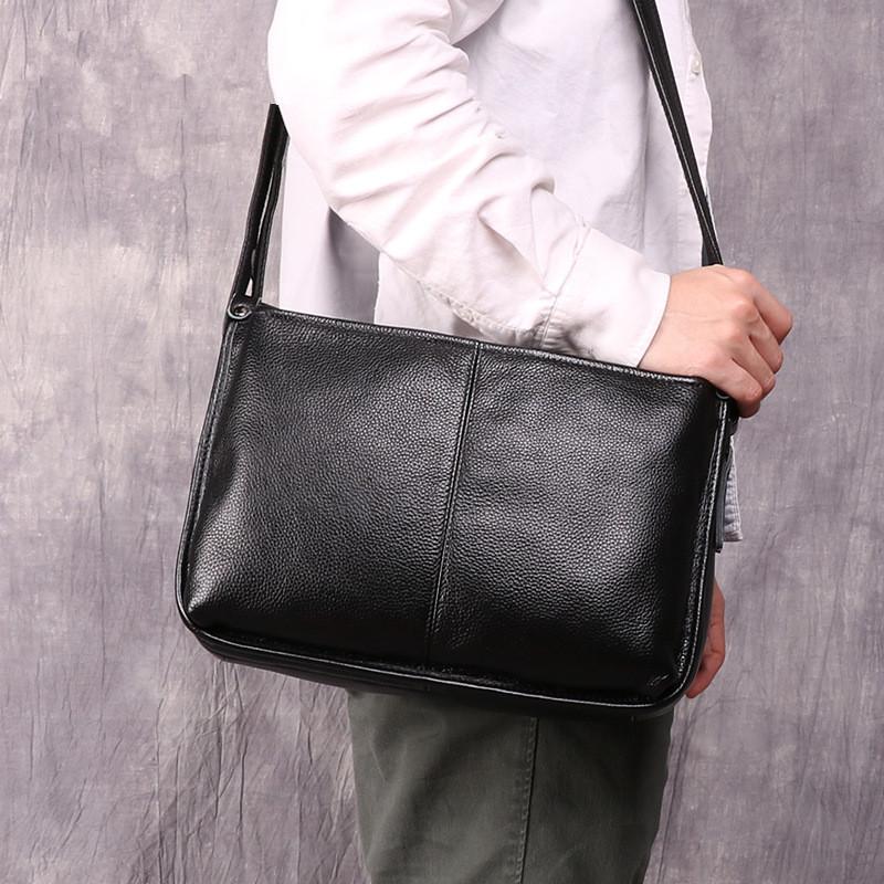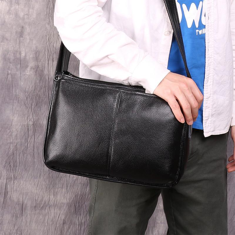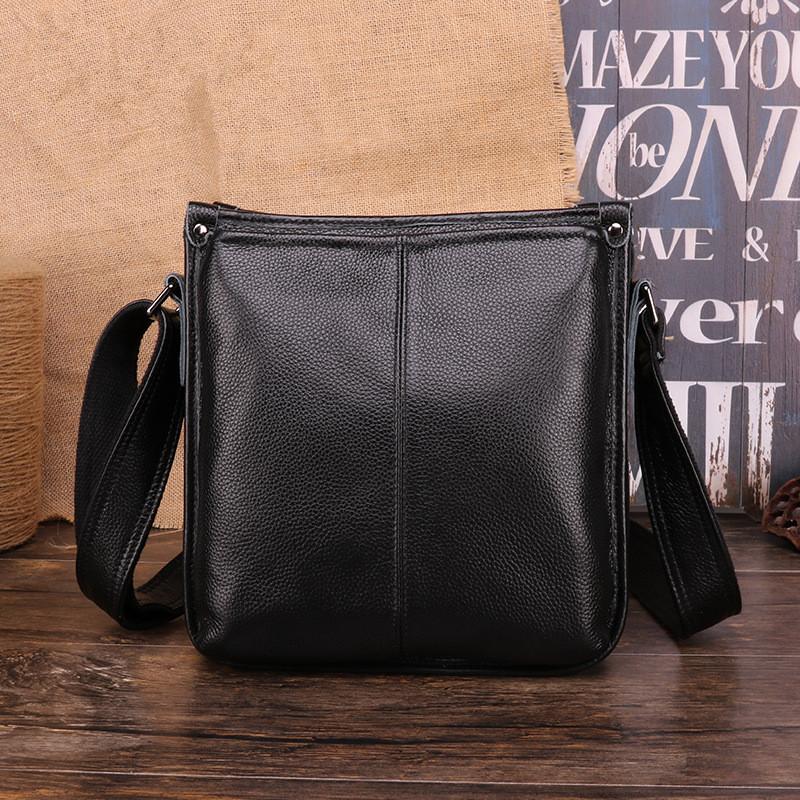 Design: Casual Fashion Black Leather Men's Side Bag Courier Bag Black Vertical Messenger Bag For MenOverview:
