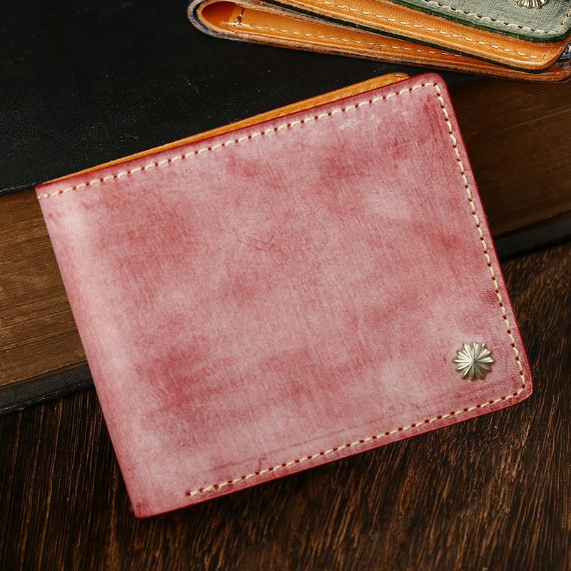 Style: Casual Handmade Mens Black billfold Wallet Red Bifold Card Wallet Small Wallet For Men