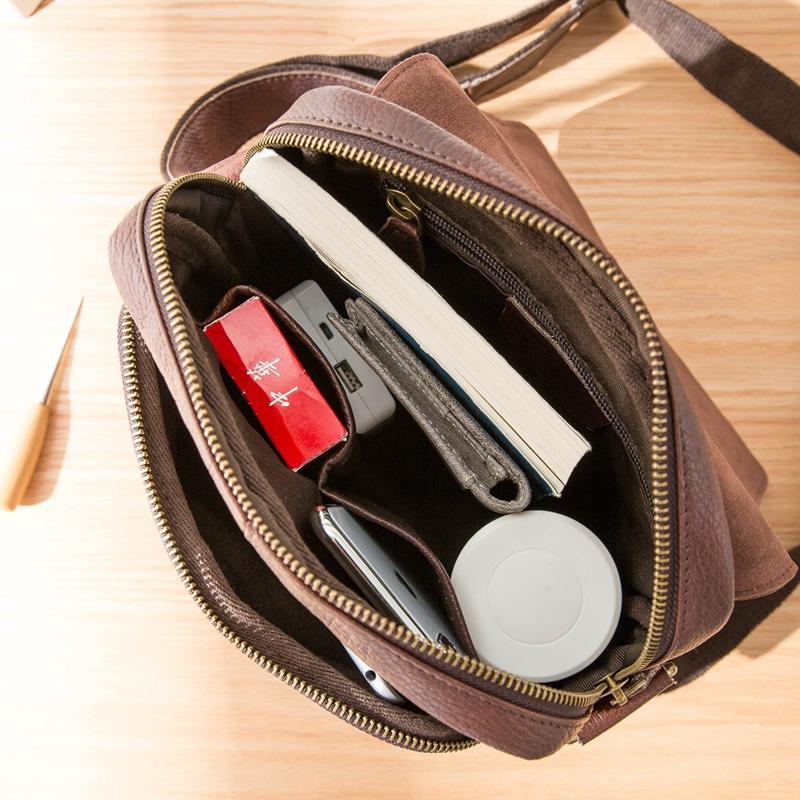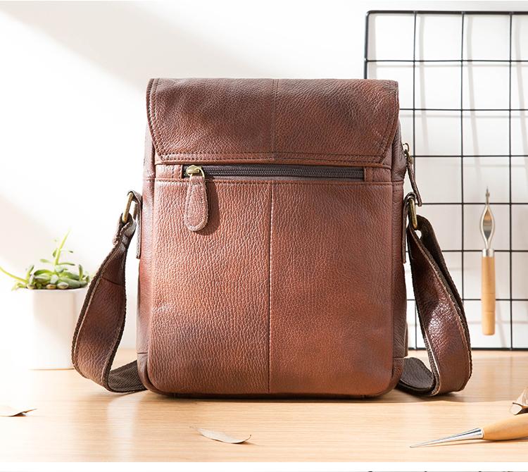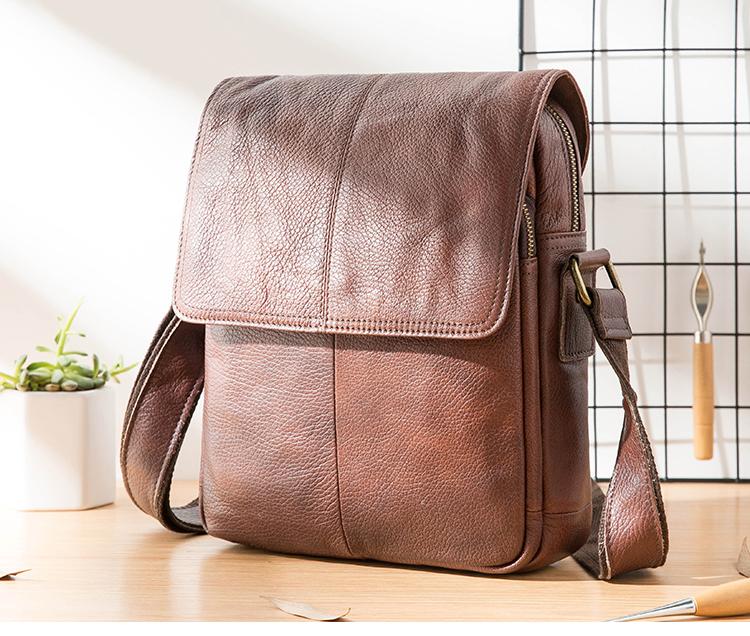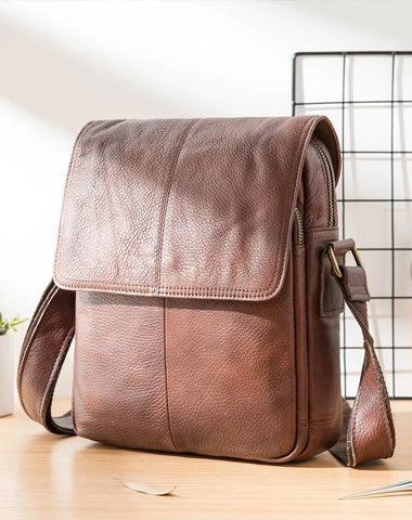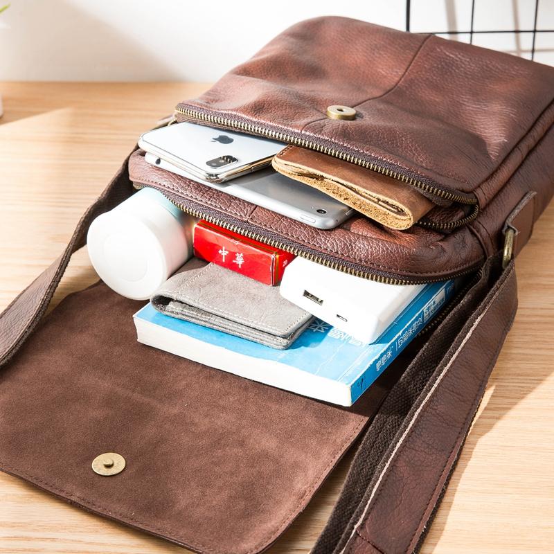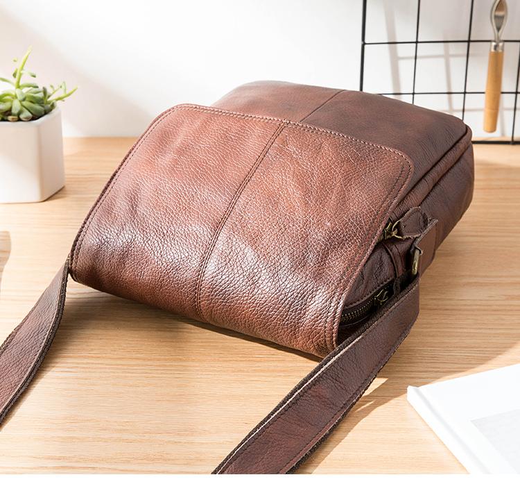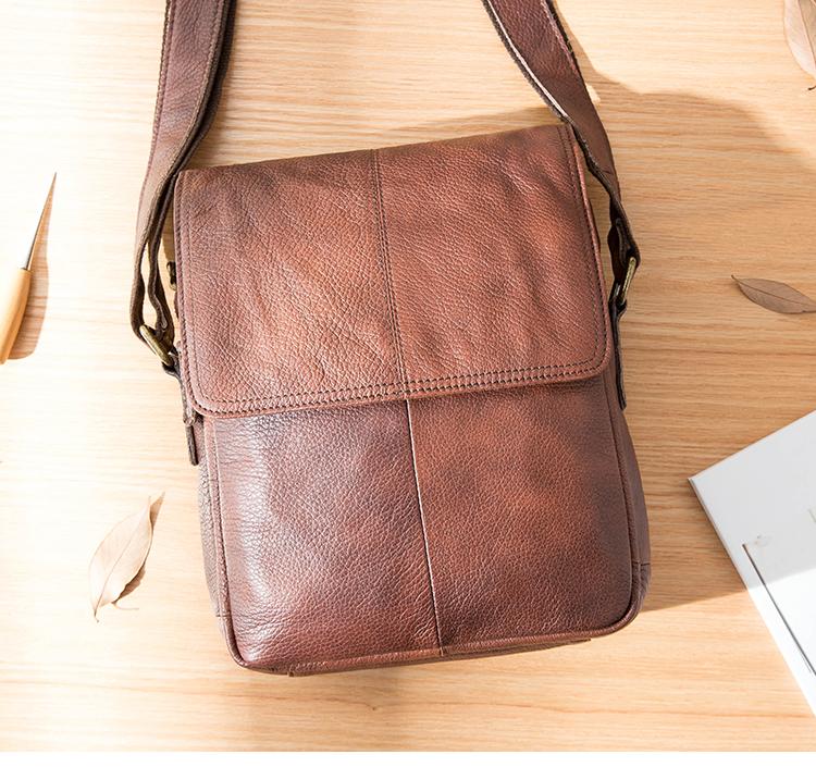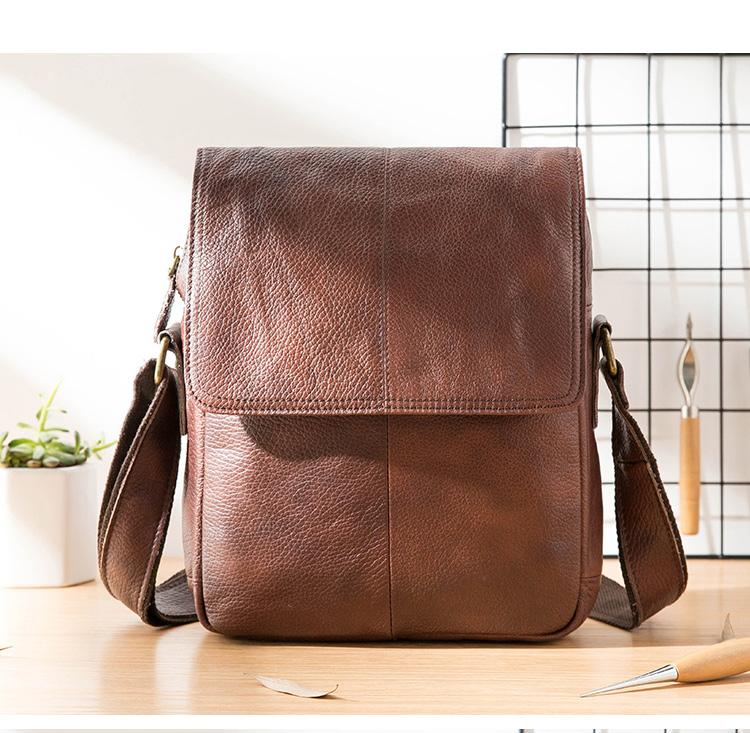 Design: Casual Leather Mens 8 inches Vertical Shoulder Bag Red Brown Messenger Bags Side Bag Sling Bag for Men