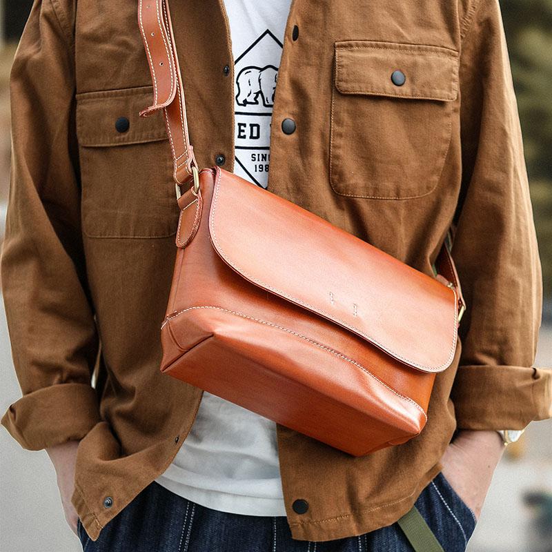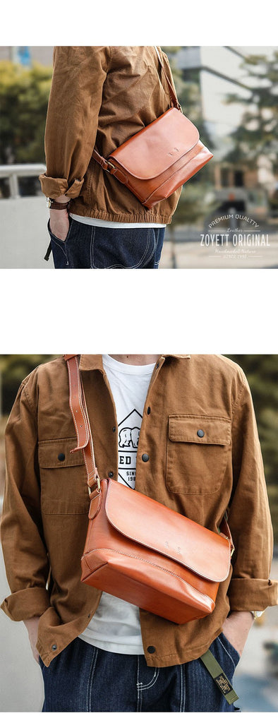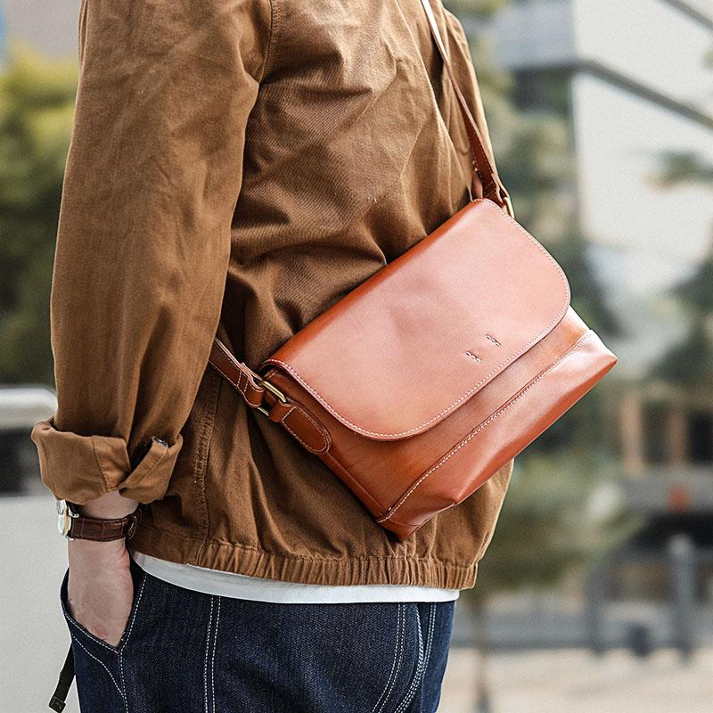 Casual Small Leather Mens Black Side Bag Brown Postman Bag Messenger Bag For Men