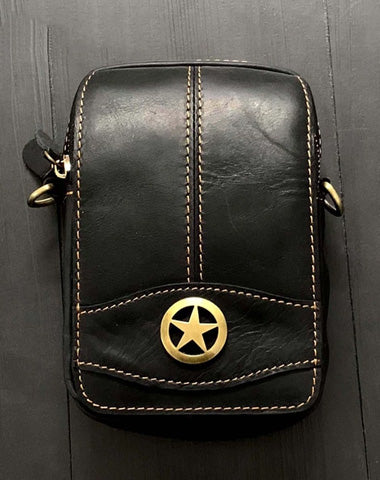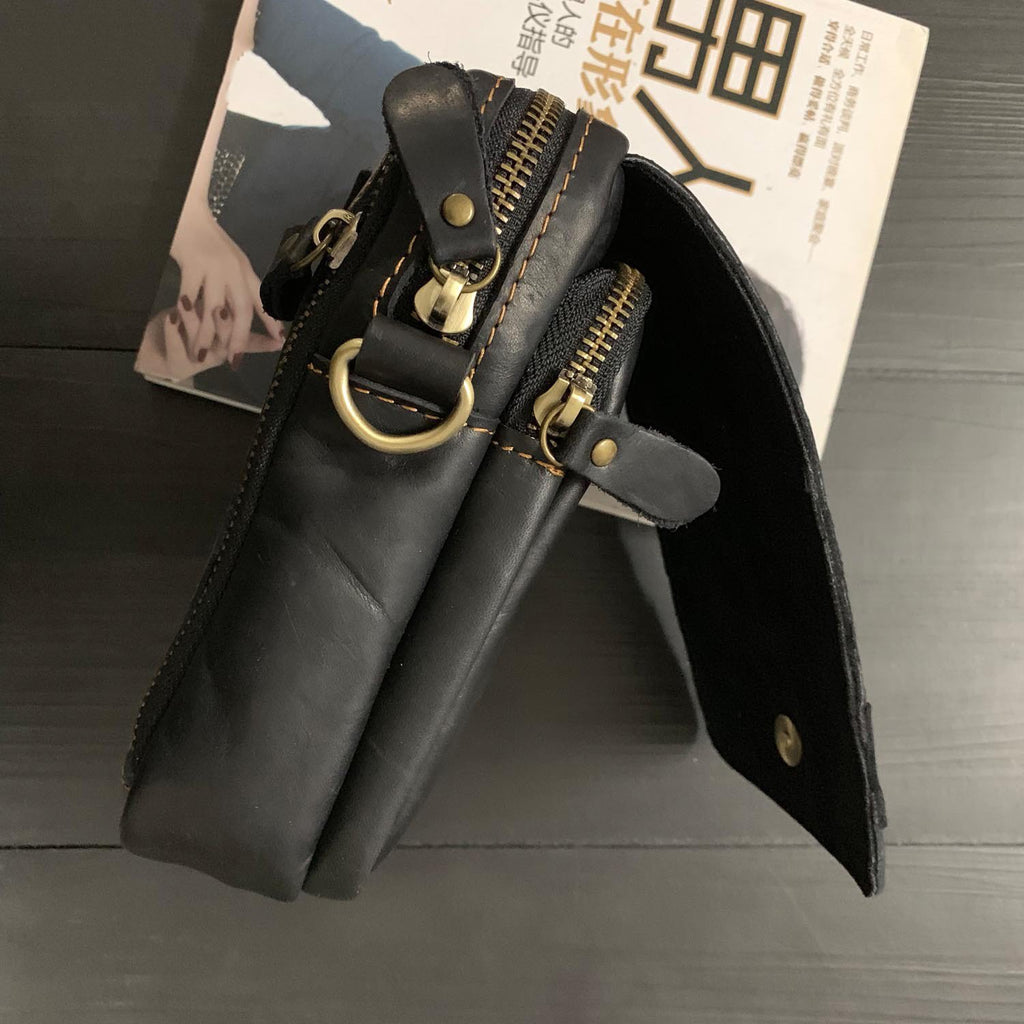 Design: Cool Black Leather Men's Biker Belt Pouch Belt Bag Small Biker Side Bag For MenOverview: