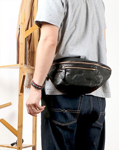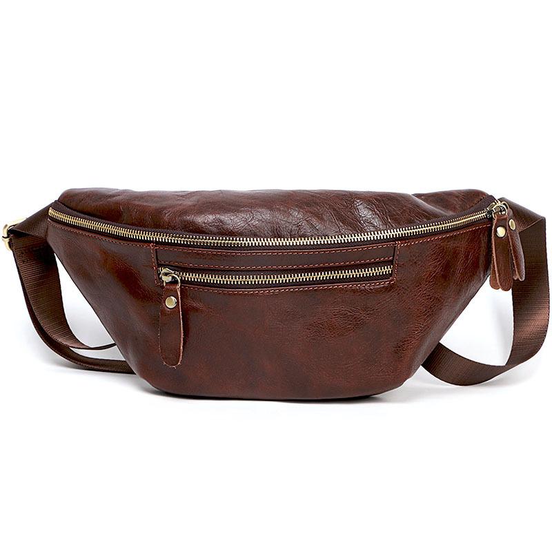 Style: Black Casual Leather Mens Chest Bag Brown Waist Bag Fanny Pack Hip Bag Bum Pack For Men