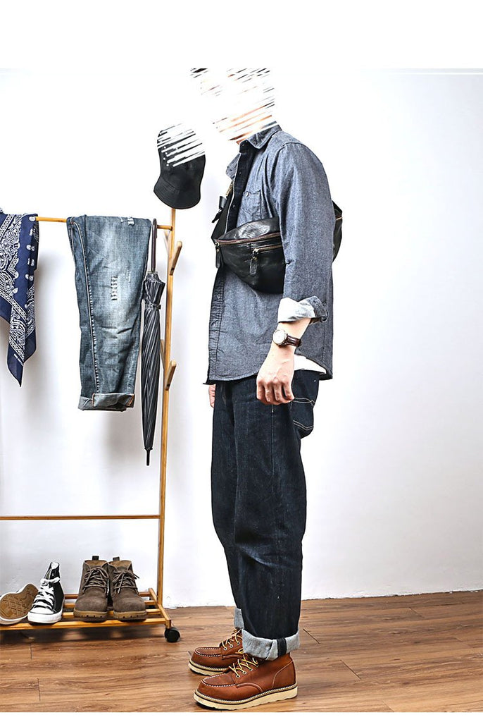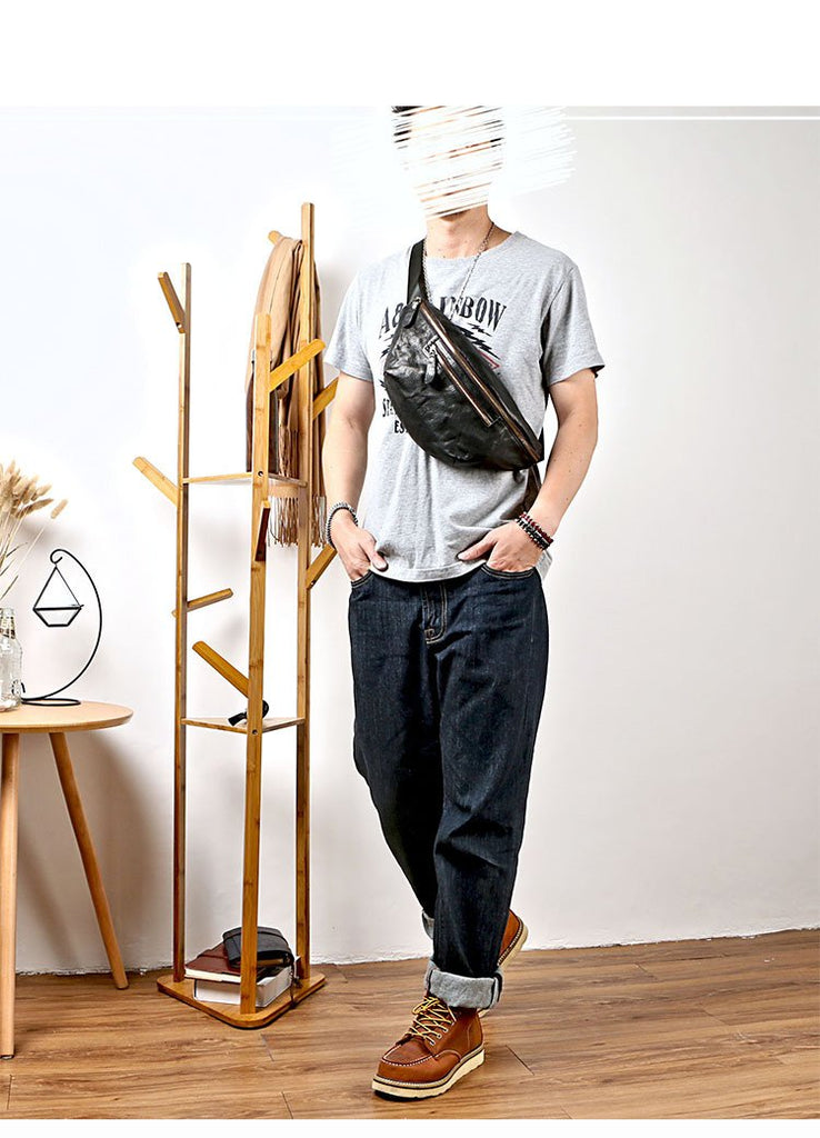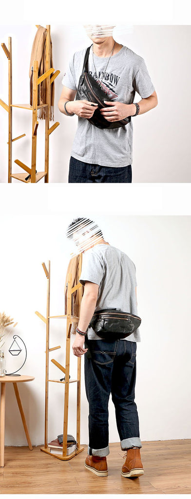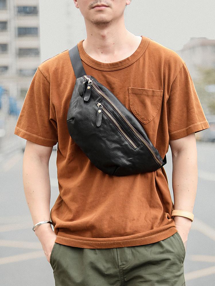 Design: Black Casual Leather Mens Chest Bag Brown Waist Bag Fanny Pack Hip Bag Bum Pack For Men