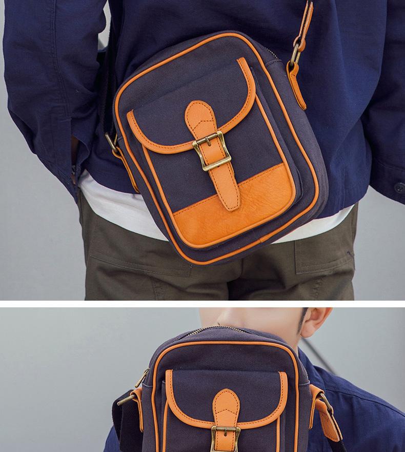 Design: Casual Navy Blue Canvas MENS Vertical SIDE BAG COURIER BAG Vertical MESSENGER BAG FOR MEN