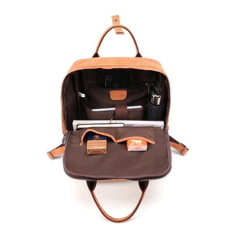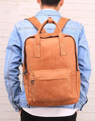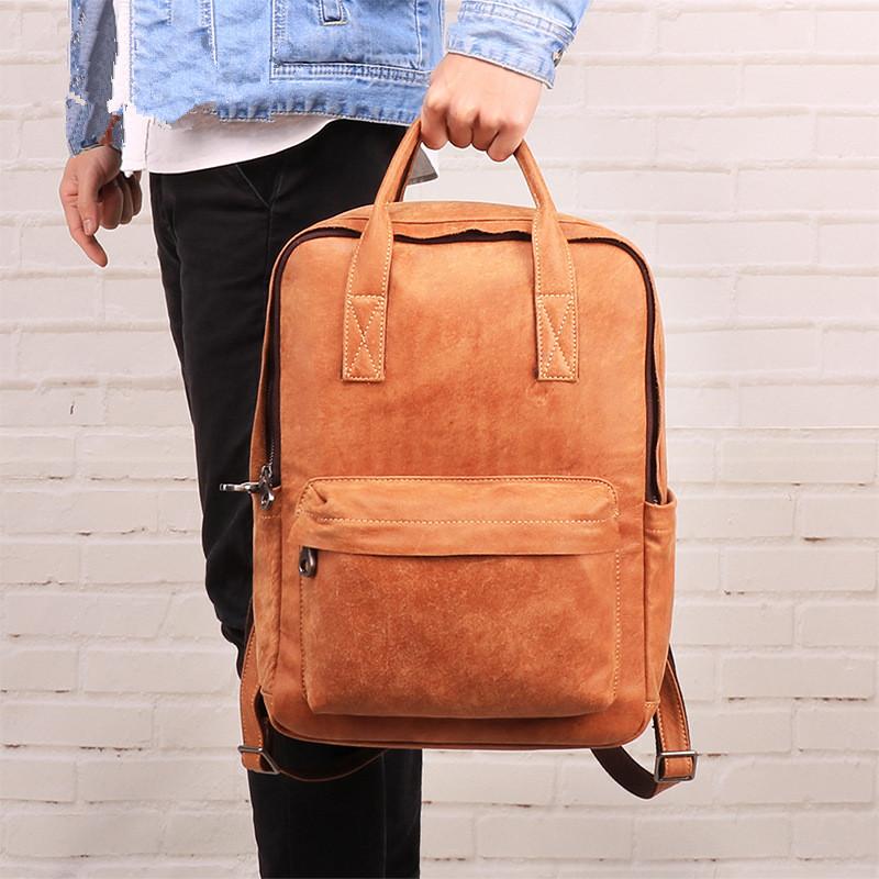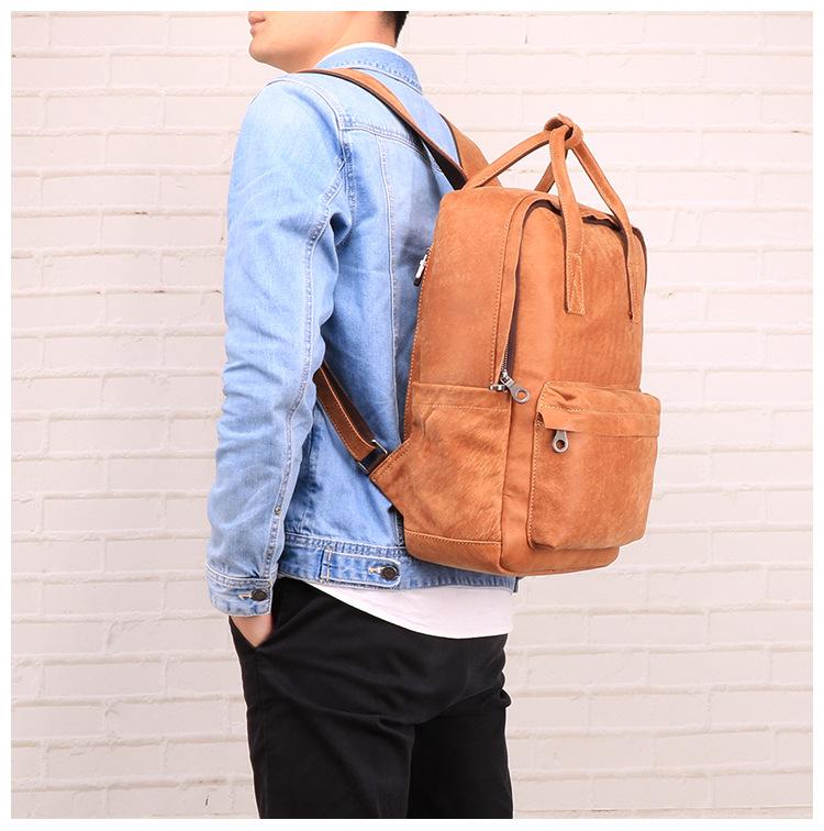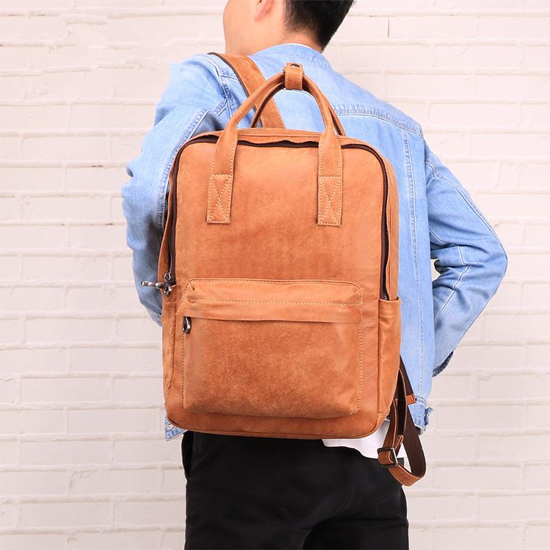 Design: Brown Leather Mens School Backpack Travel Backpack Handbag 13inch Computer Backpack for Men