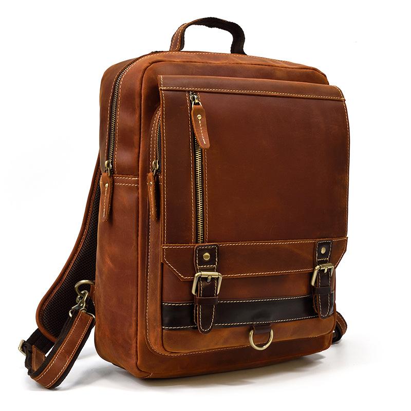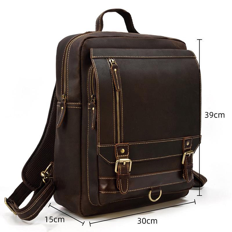Design: Casual Brown Mens Leather Large School Backpack Satchel Backpack Computer Backpack For MenOverview: