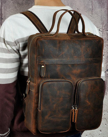Design: Casual Red Brown Leather Men's 15 inches Side Courier Bag Bag Computer Backpack School Backpack For MenOverview: