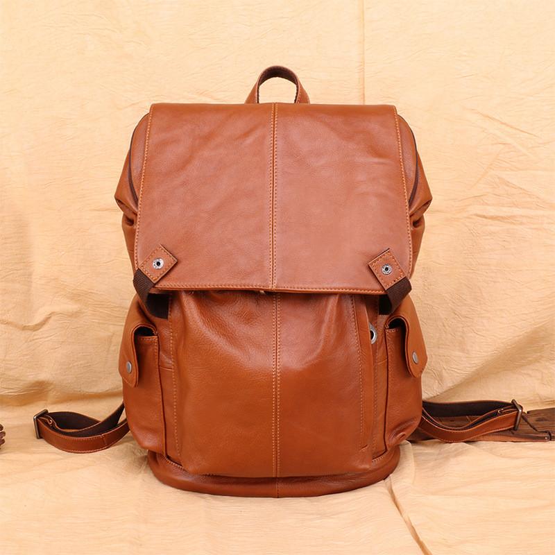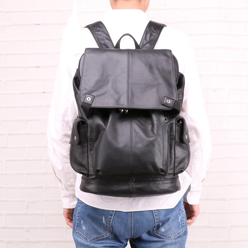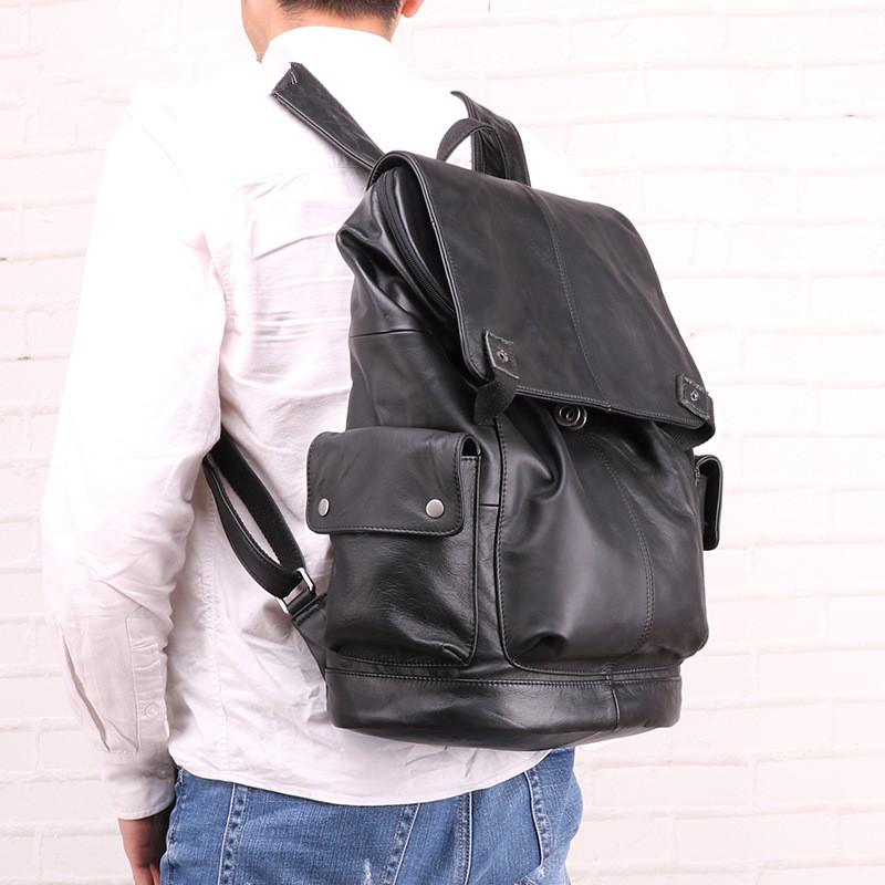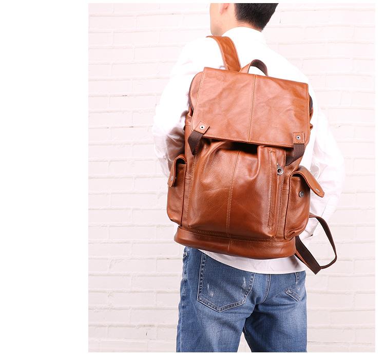 Design: Cool Brown Black Leather Men's Backpack College Backpack 13inch Laptop Backpack For Men
