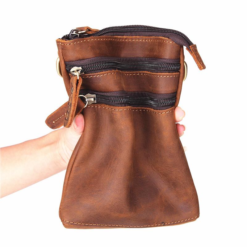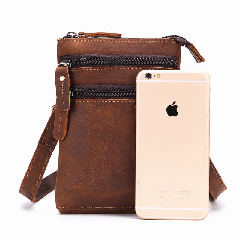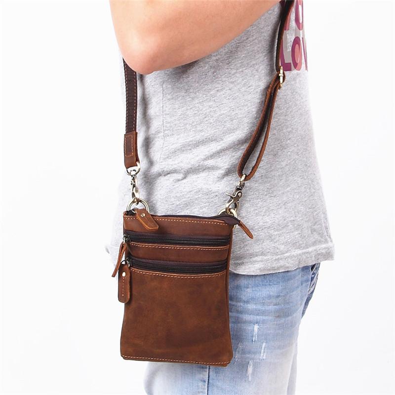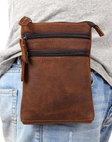 Vintage Leather Men's Waist Belt Pouch Cell Phone Holster Brown Mini Side Bag For Men