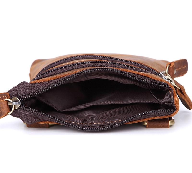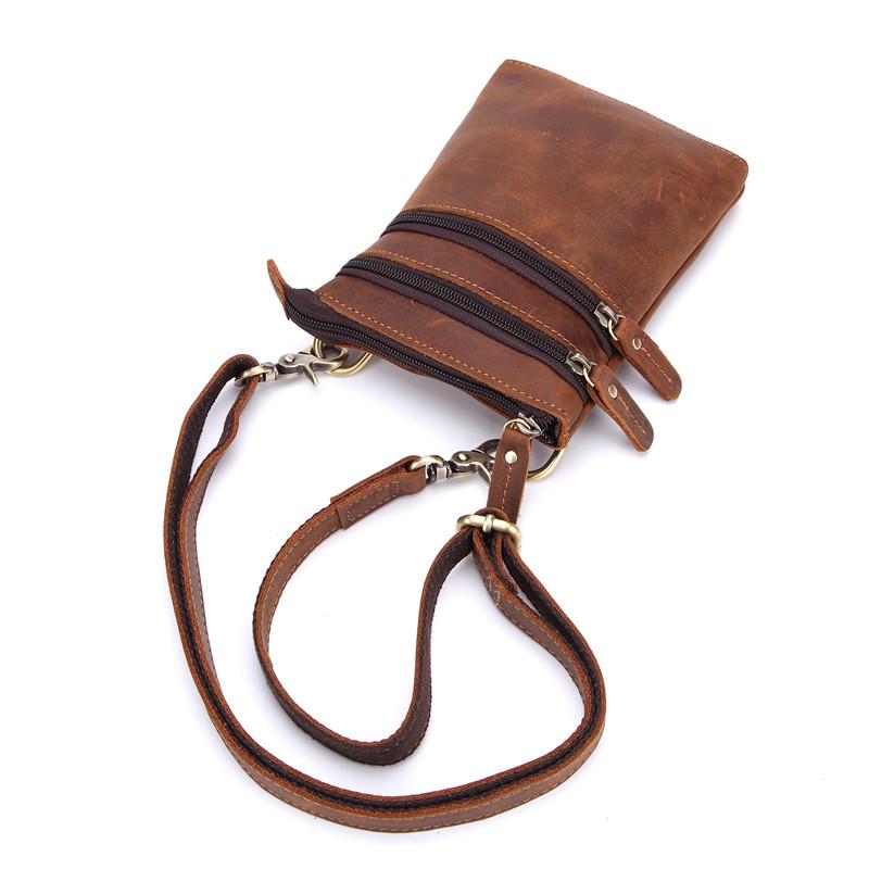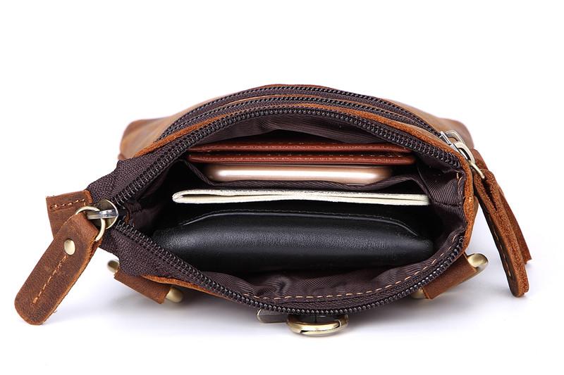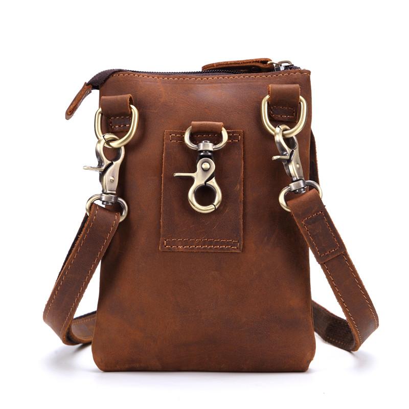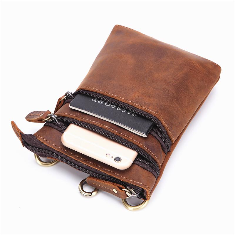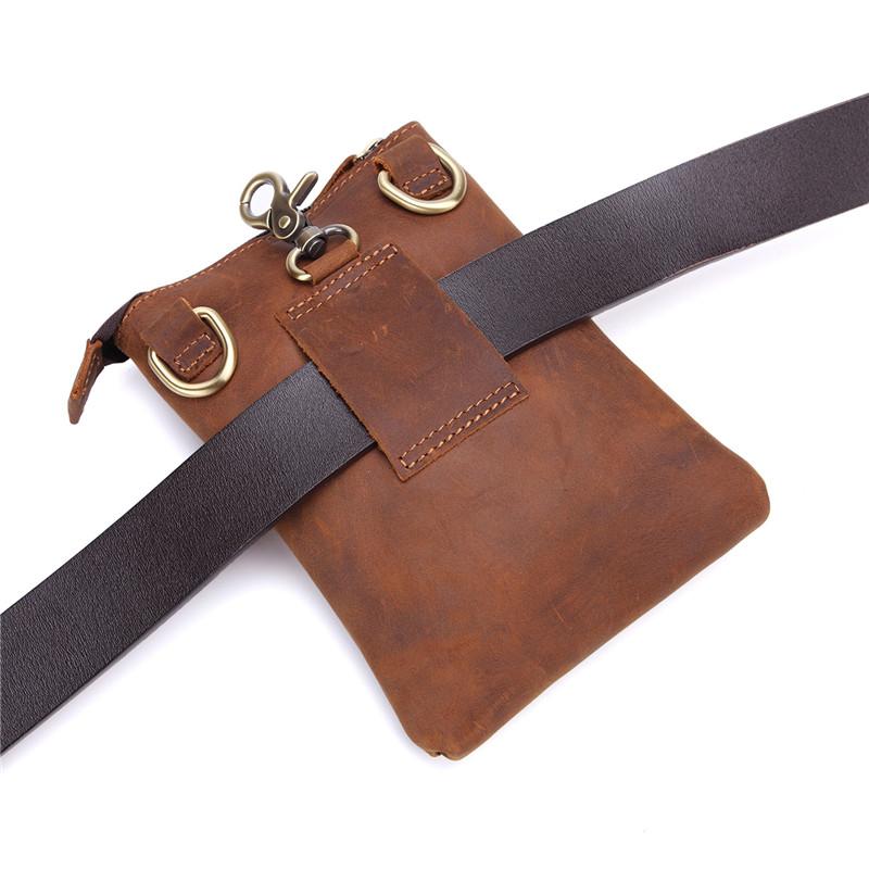 Design: Vintage Leather Men's Belt Pouch Cell Phone Holster Brown Mini Side Bag For Men