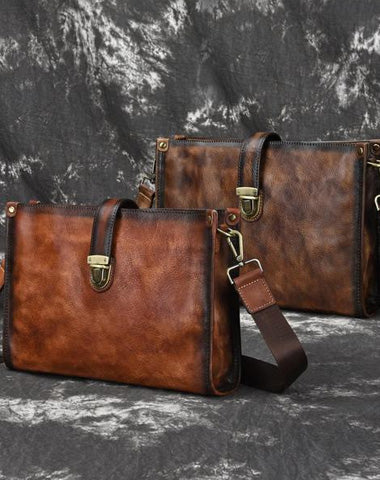 Design: Vintage Brown Leather Men's Side Bag Messenger Bag 10'' Courier Shoulder Bag For Men