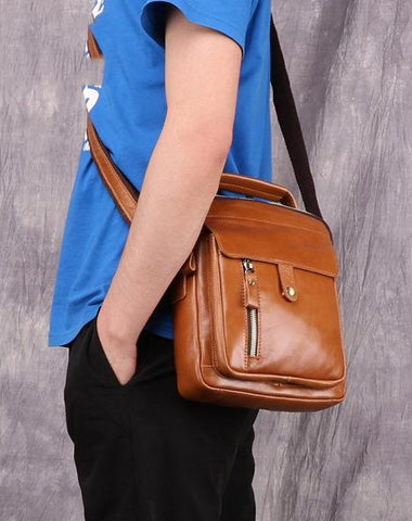 Design: Fashion Brown Leather Men's Small Vertical Courier Bag Messenger Bag Side Bag For Men