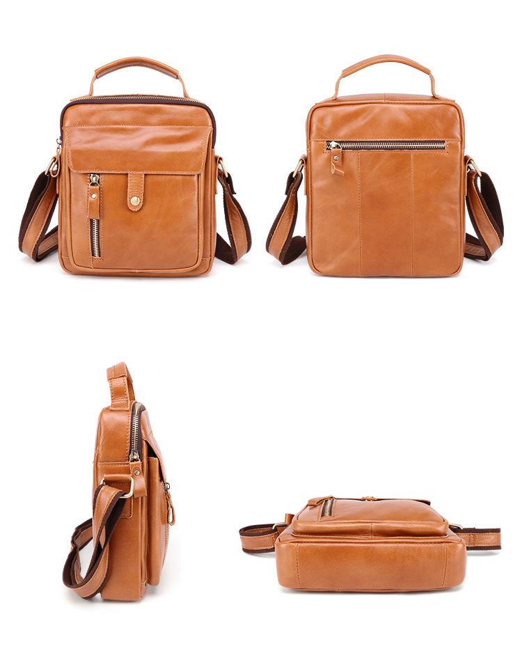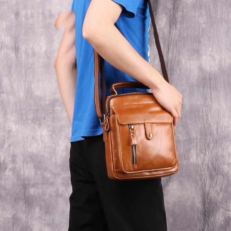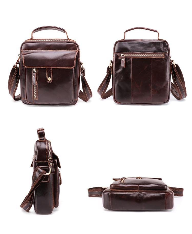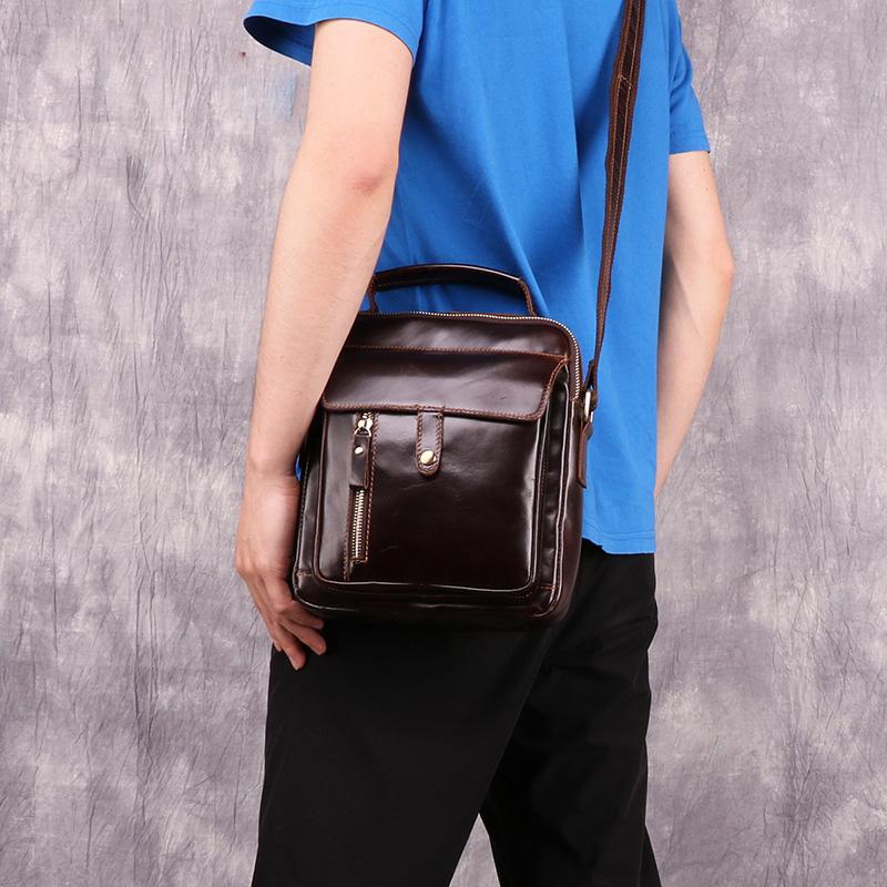 Design: Fashion Brown Leather Men's Small Vertical Courier Bag Messenger Bag Side Bag For MenOverview: