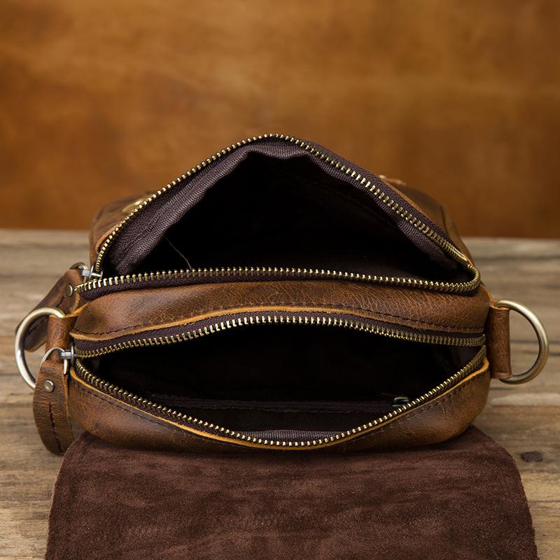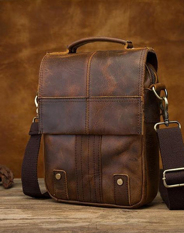 Design: Vintage Brown Leather Mens Small Vertical Side Bags Courier Bag Messenger Bag For MenOverview: