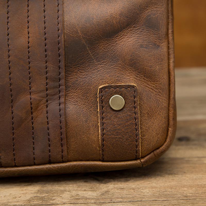 Design: Vintage Brown Leather Mens Small Vertical Side Bags Courier Bag Messenger Bag For Men
