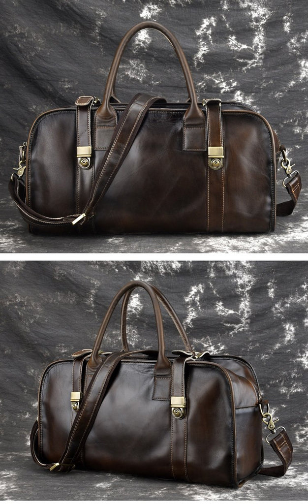 Design: Casual Vintage Leather Men's Large Weekender Bag Travel Bag Overnight Bag For Men