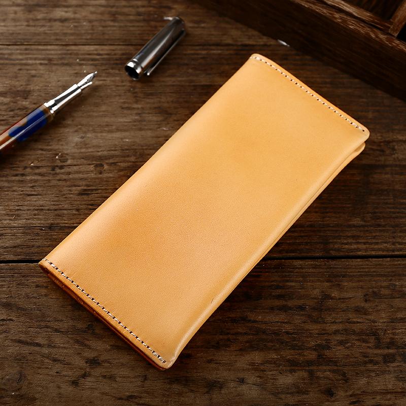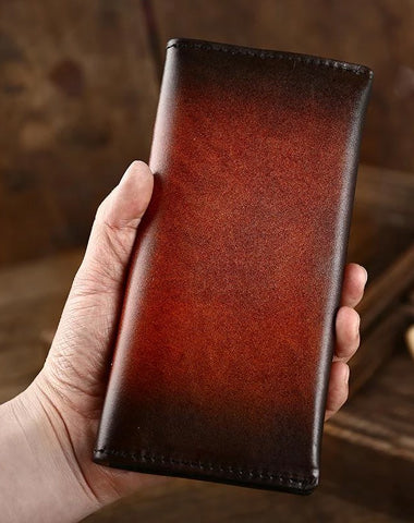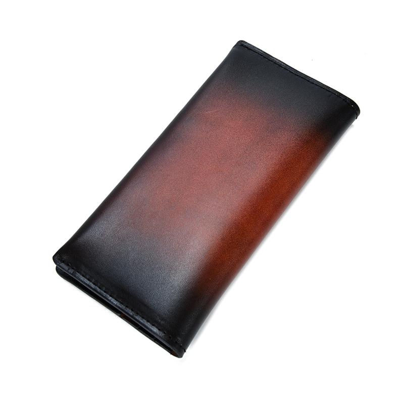 Style: Casual Retro Leather Mens Wine Red Slim Long Wallet Light Beige Bifold Card Wallet Clutch Wallet For Men