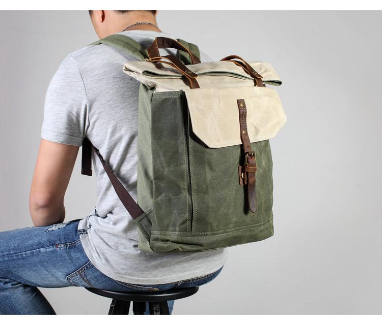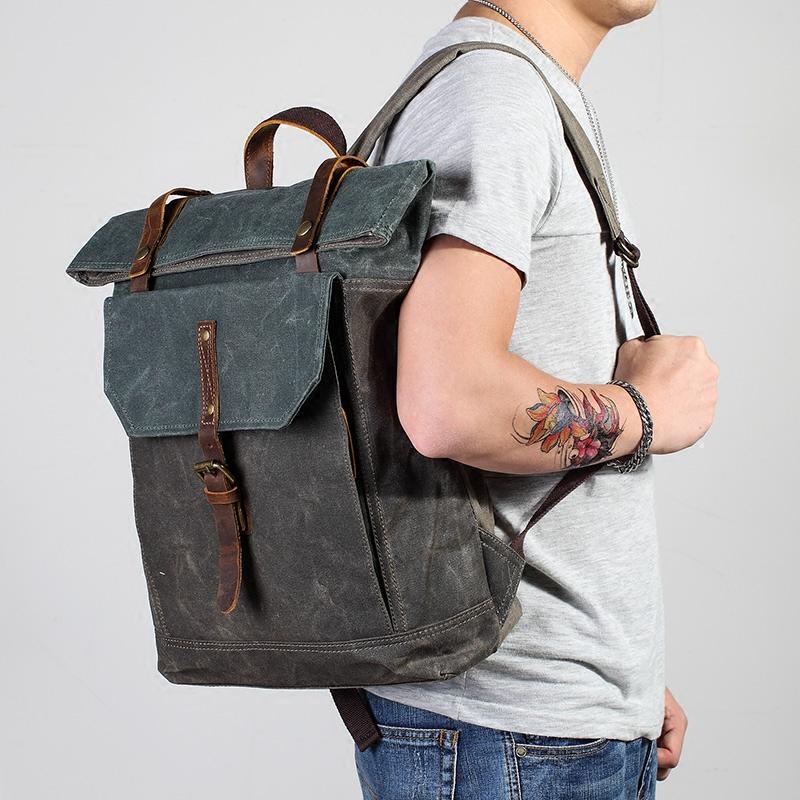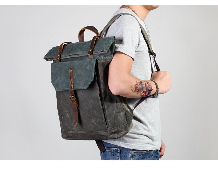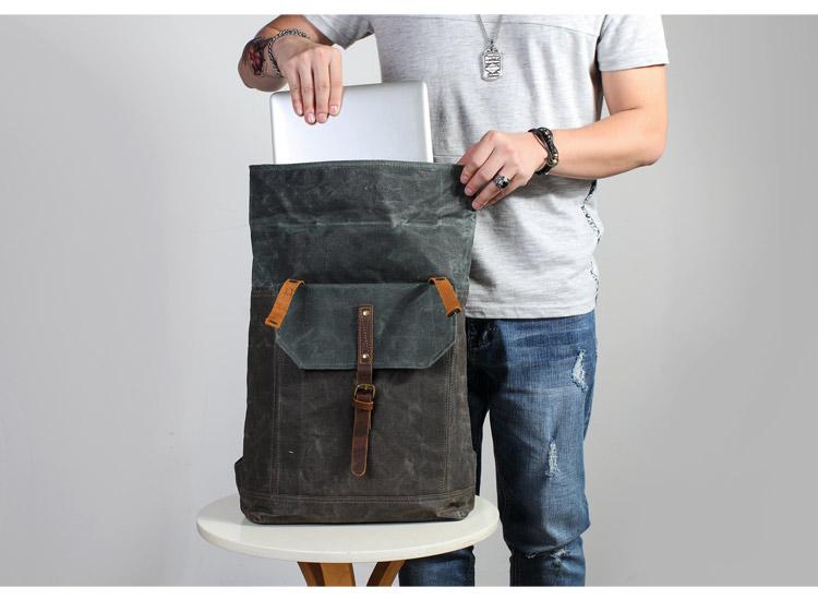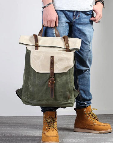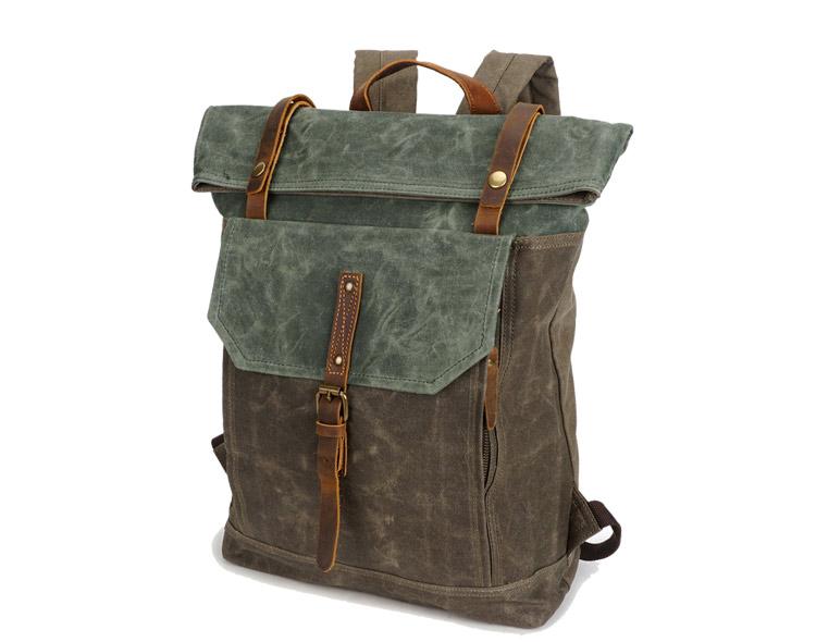 Style: Casual Waxed Canvas Green Men's Travel School Backpack Laptop Backpack For Men