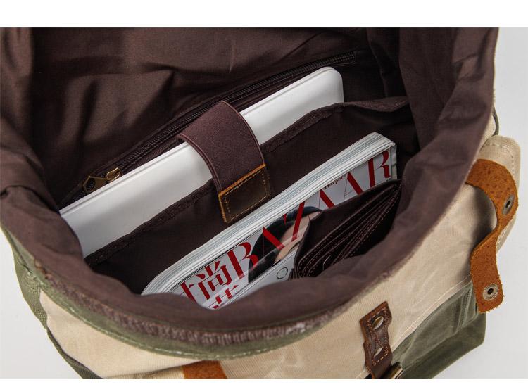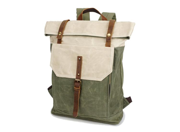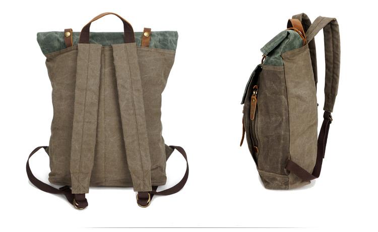 Design: Casual Waxed Canvas Green Men's Travel School Backpack Laptop Backpack For Men