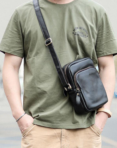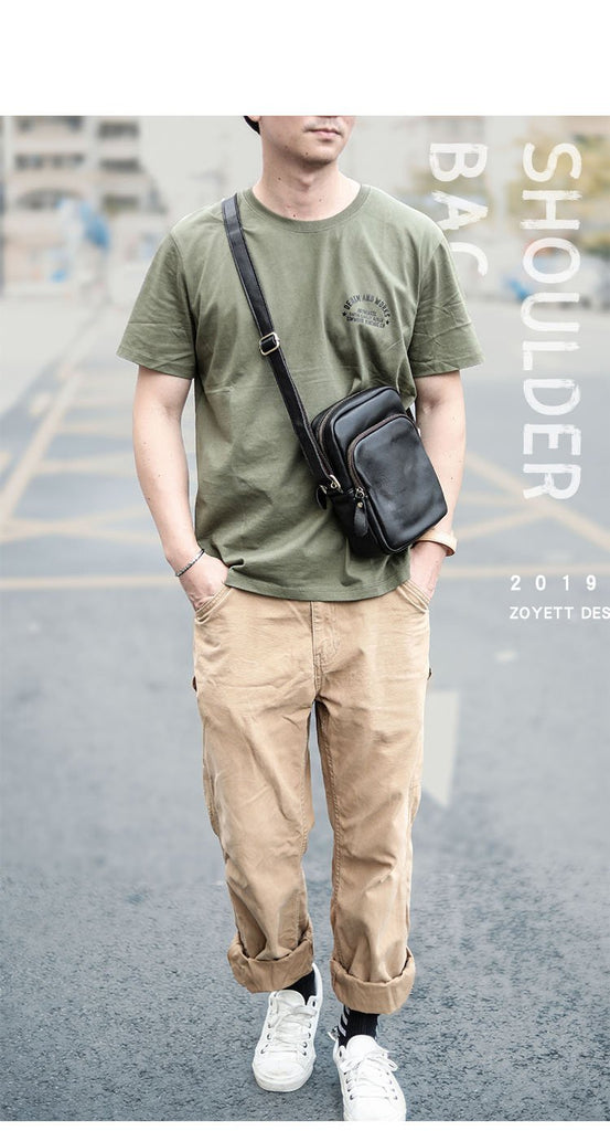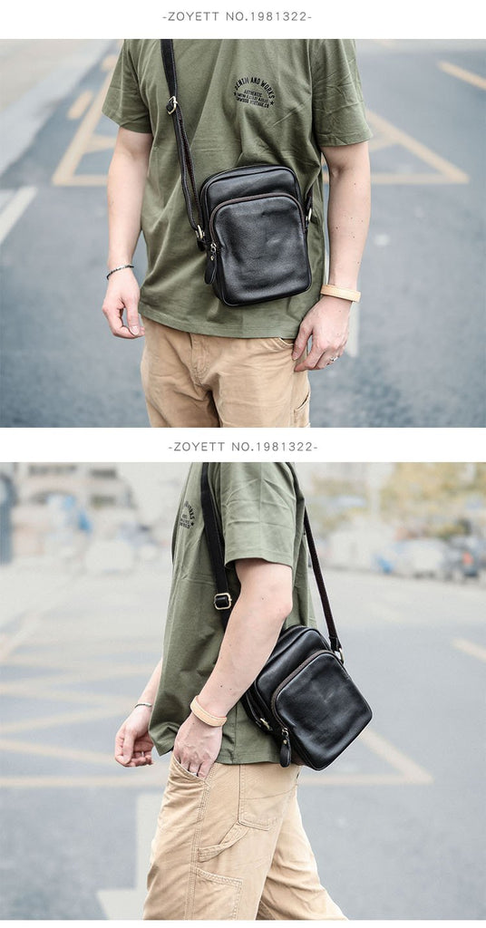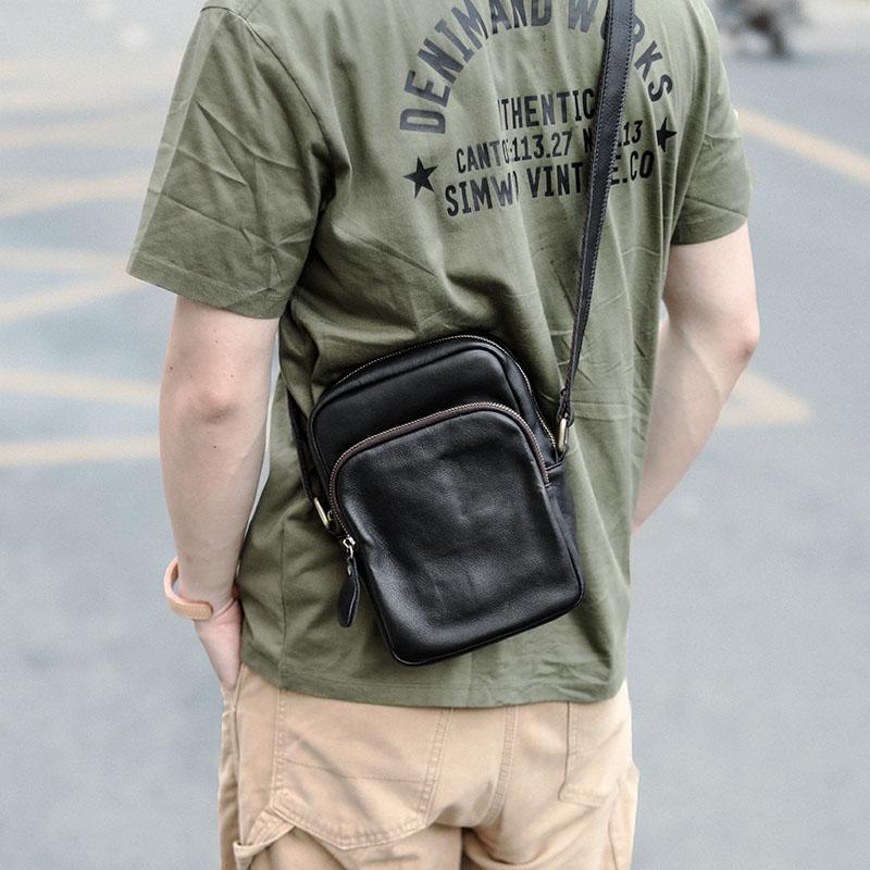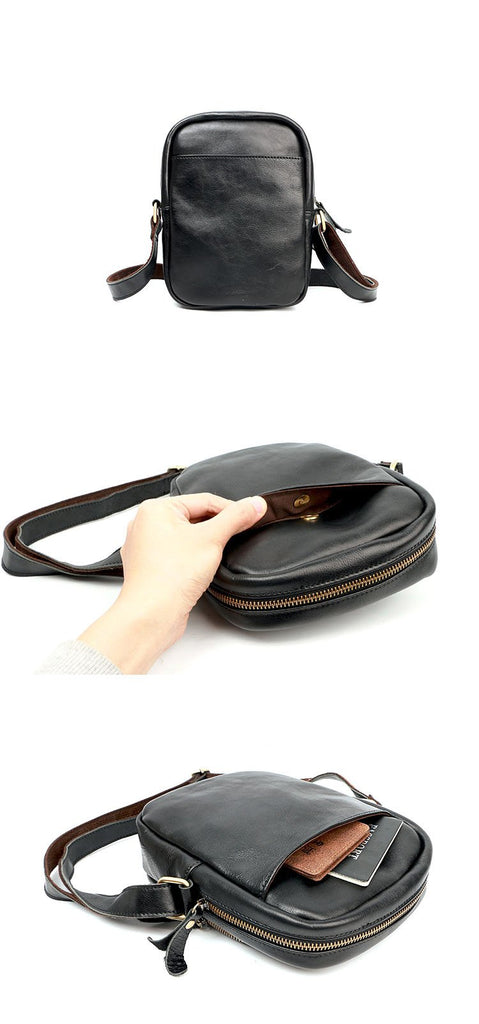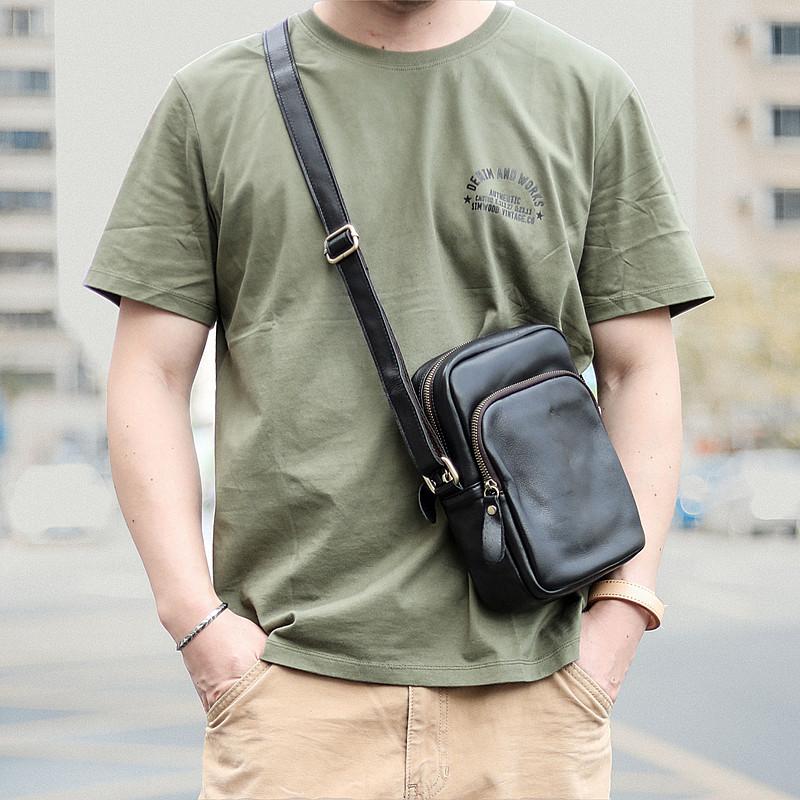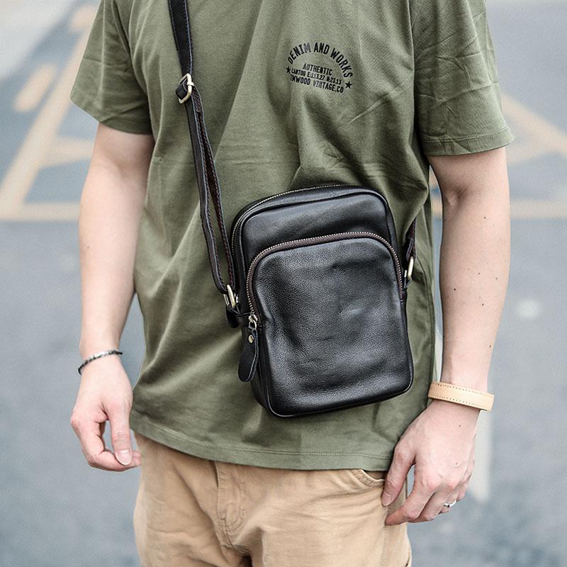 Design: Casual Small Leather Mens Black Side Bag Gradient Blue Postman Bag Messenger Bag For Men