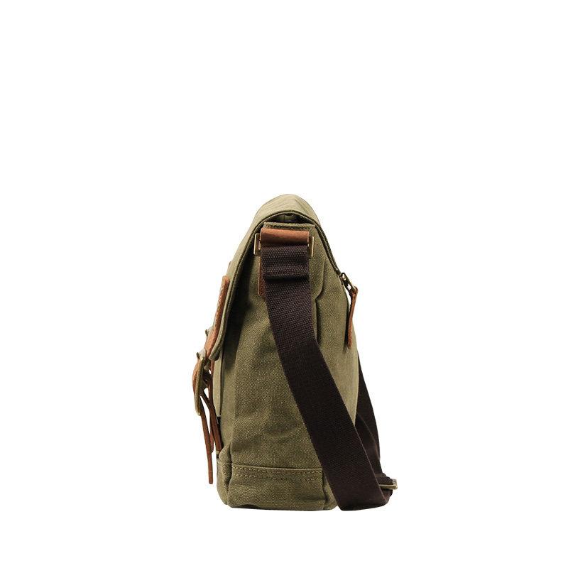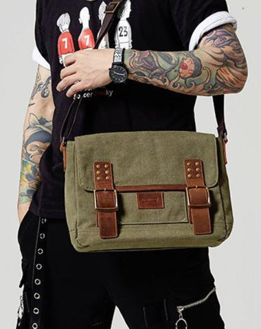 Style: Black Canvas Leather Mens Side Bag Messenger Bags Army Green Canvas Courier Bag for Men