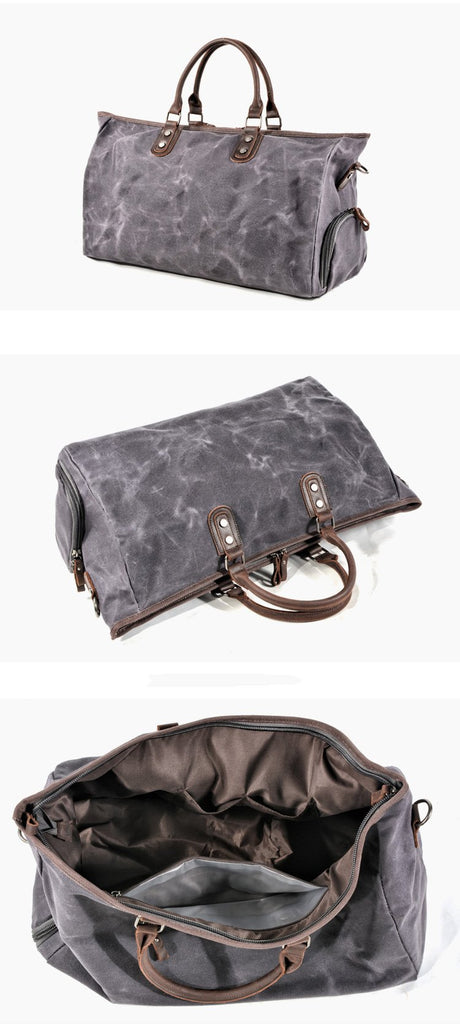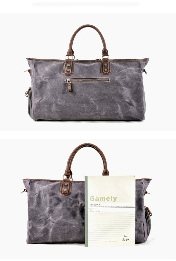 Style: Casual Waxed Canvas Leather Mens Large Messenger Travel Weekender Bag Duffle Bag for Men