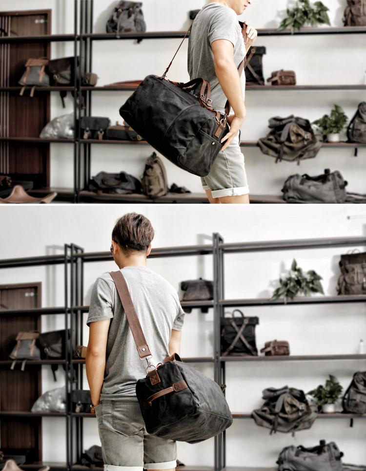 Design: Casual Waxed Canvas Leather Mens Military Style Travel Weekender Bag Messenger Bag for Men