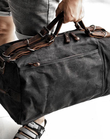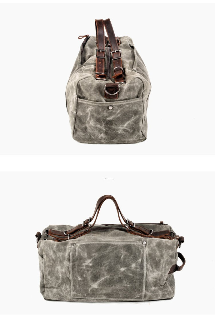 Style: Casual Waxed Canvas Leather Mens Military Style Travel Weekender Bag Messenger Bag for Men
