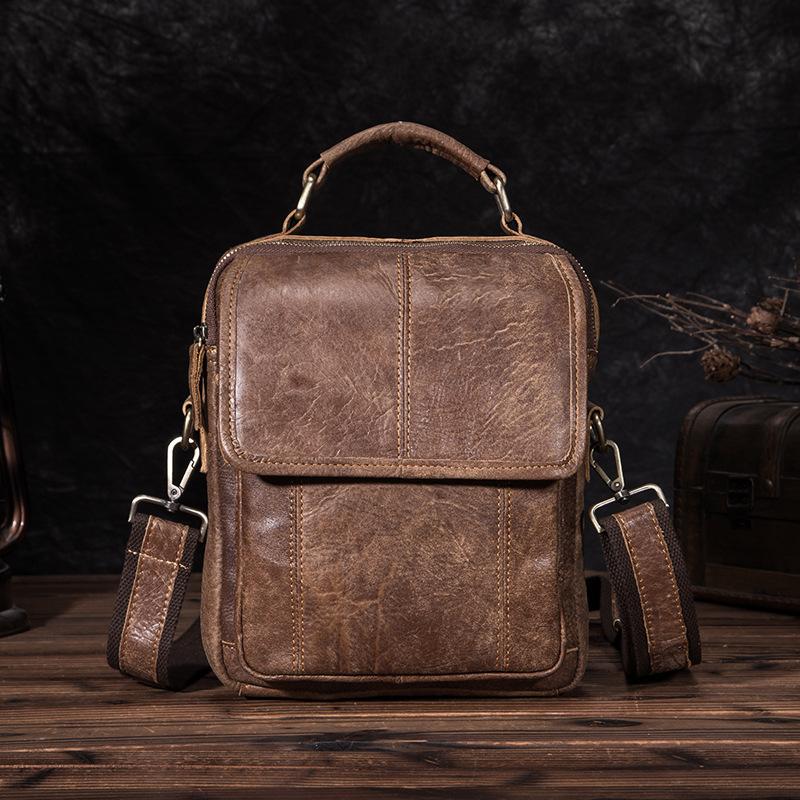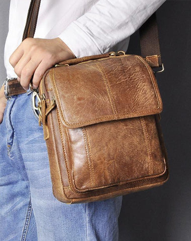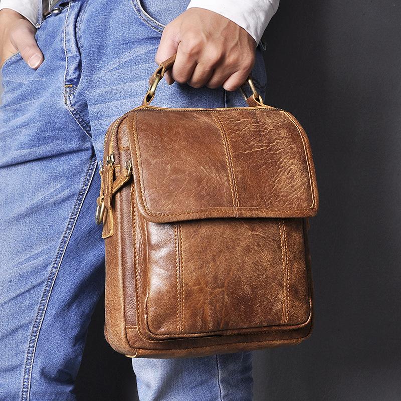 Style: Casual Yellow LEATHER MENS 10 inches Vertical SIDE BAG COURIER BAG Vertical MESSENGER BAG FOR MEN