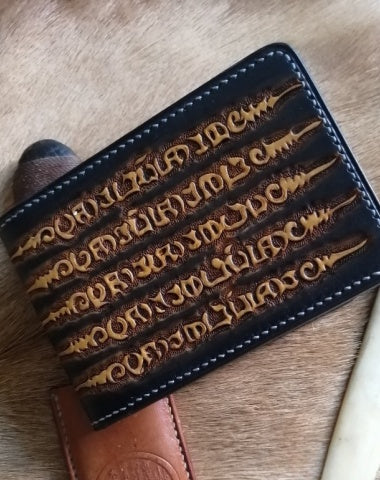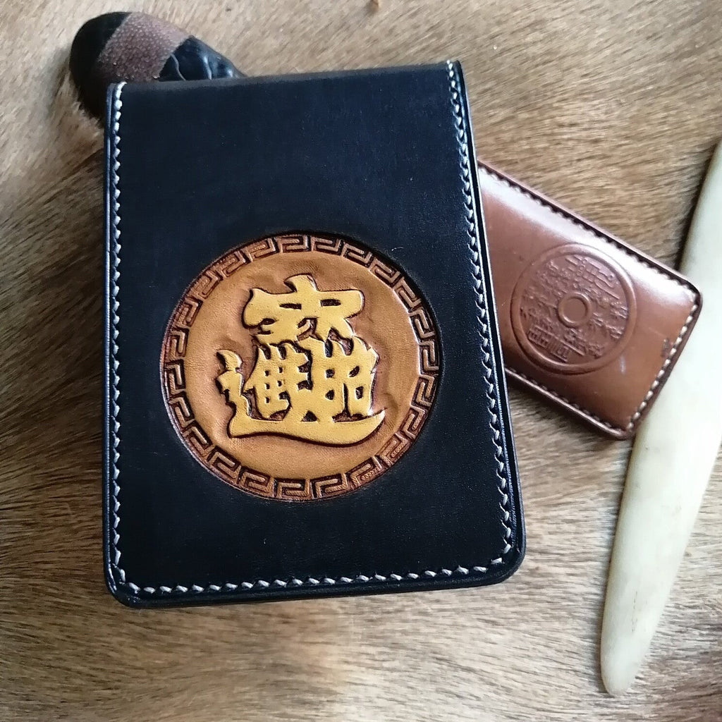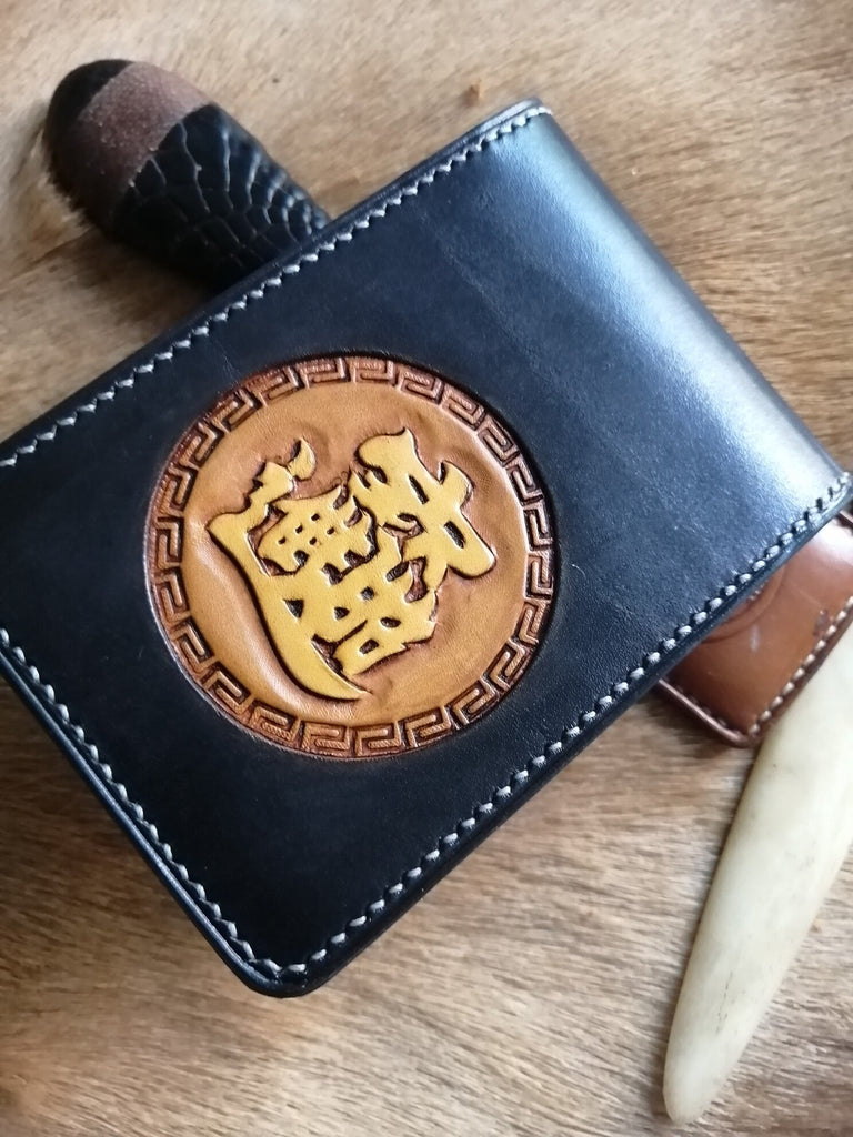 Design: Chinese Dragon ID Holder Wallet Mens Wallet with ID Window Loong Tooled Leather Wallet Card Wallet with ID Window