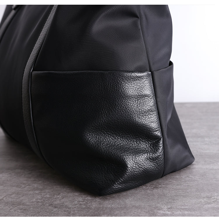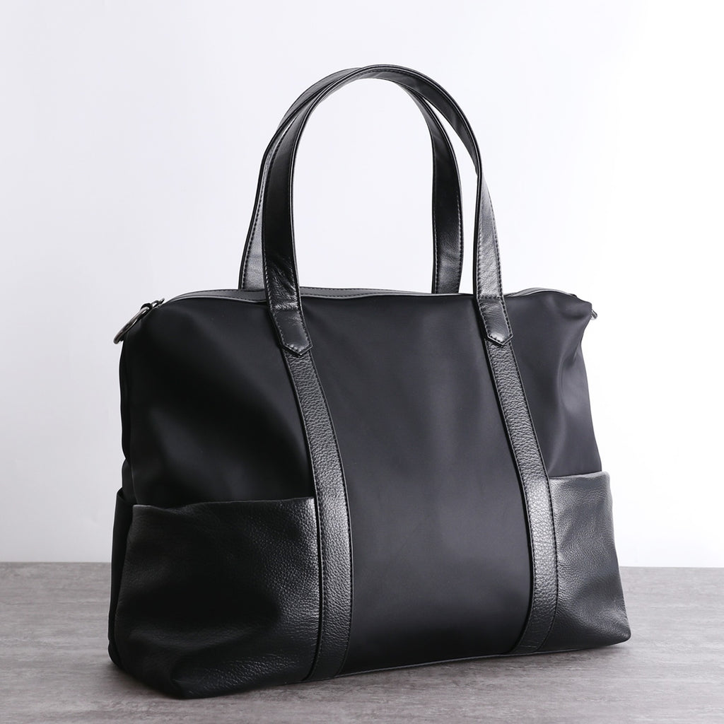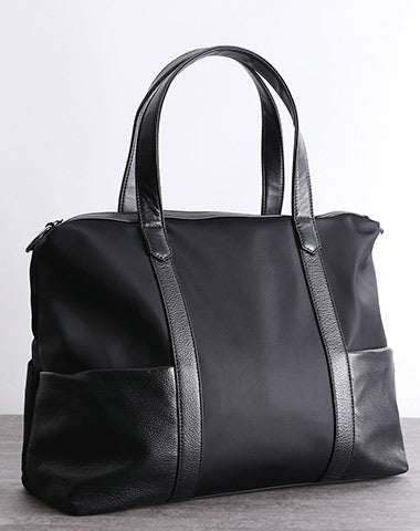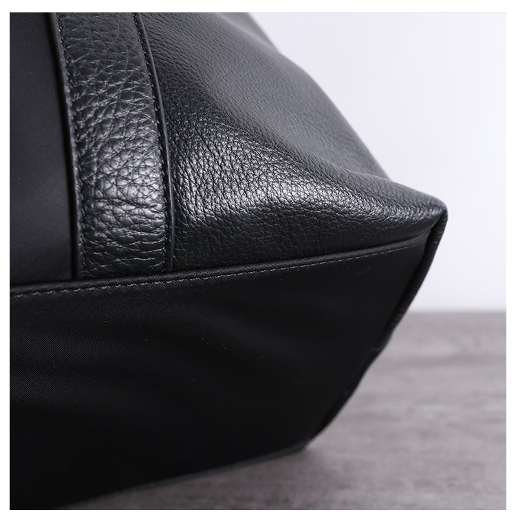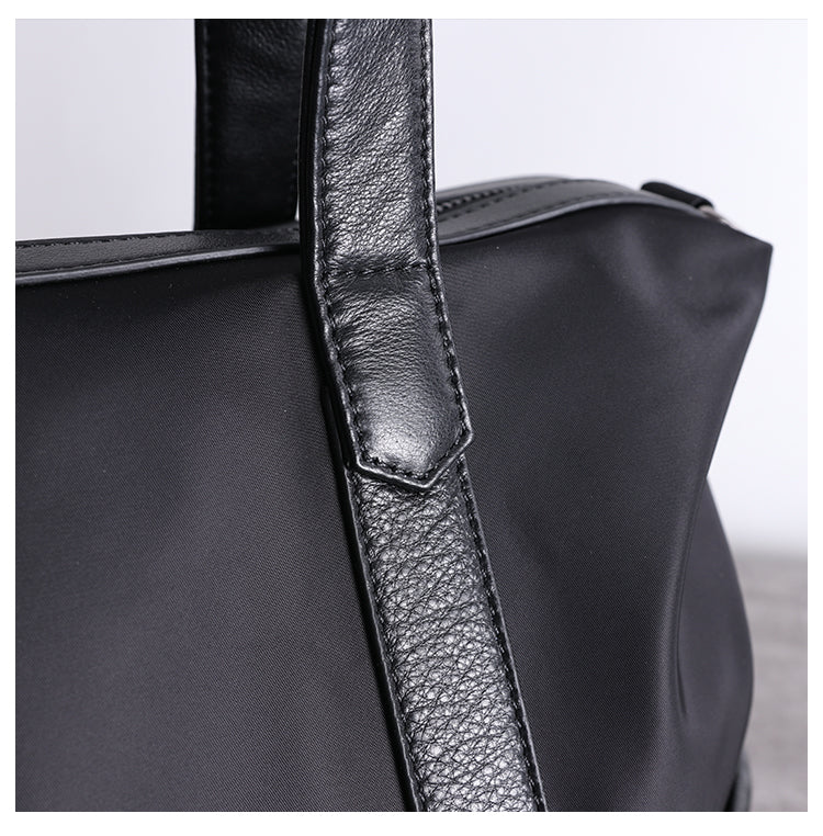 Style: Classic Womens Nylon Leather Handbags Mens Black Nylon Laptop Shoulder Purse for Ladies