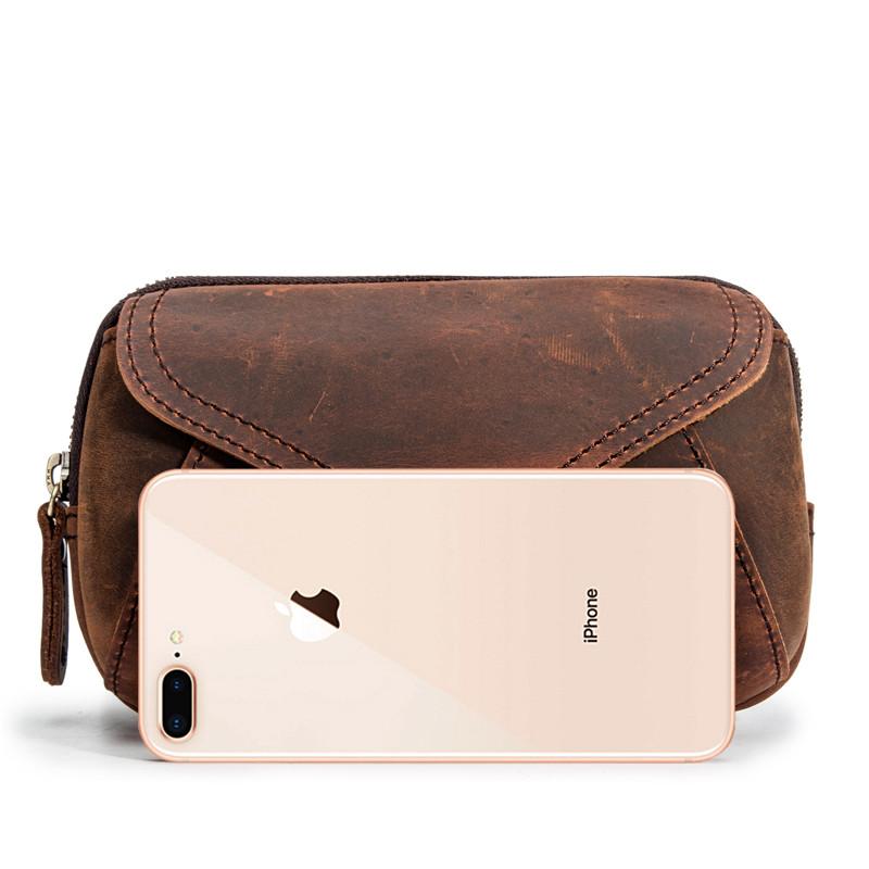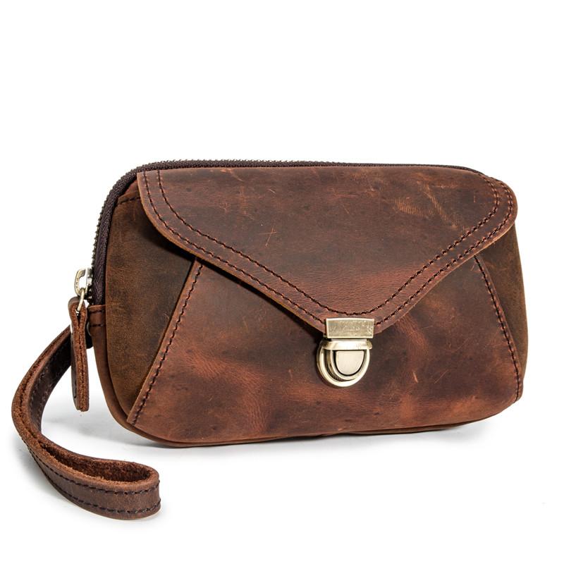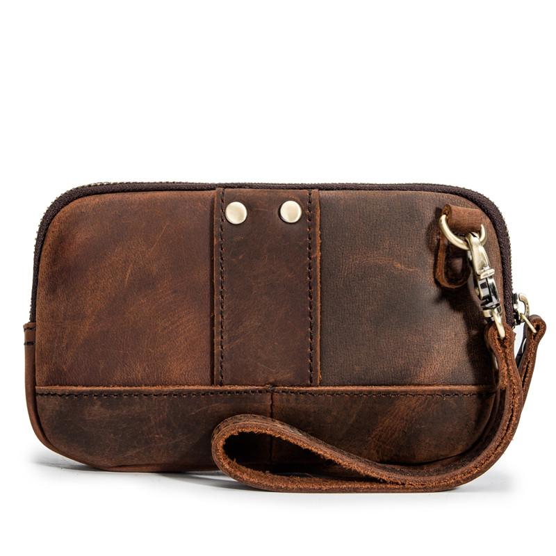 Style: Classy Brown Leather Mens Work Clutch Bag Wirstlet Clutch Mobile Phone Bag For Men