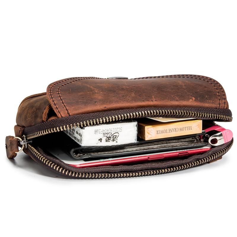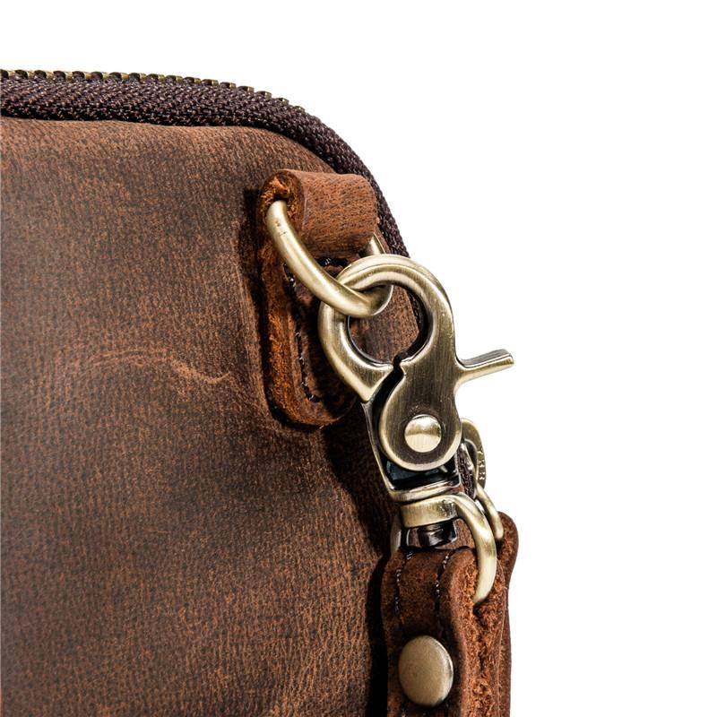 Design: Classy Brown Leather Mens Work Clutch Bag Wirstlet Clutch Mobile Phone Bag For Men