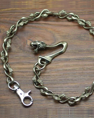 Cool Men's Handmade Dragon Skull Brass Biker Wallet Chain Pants Chain For Men