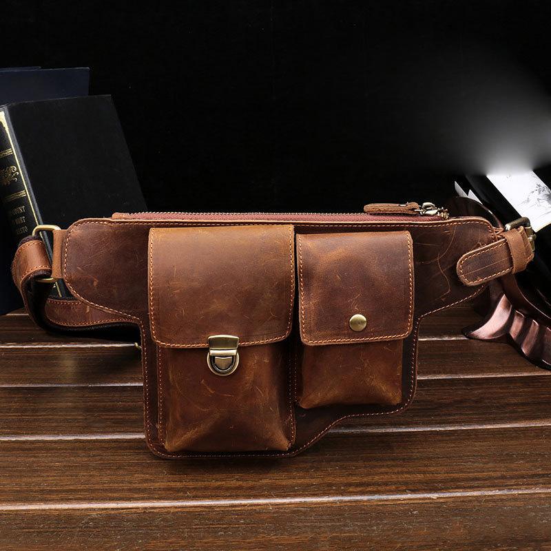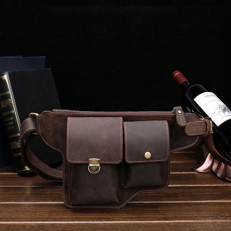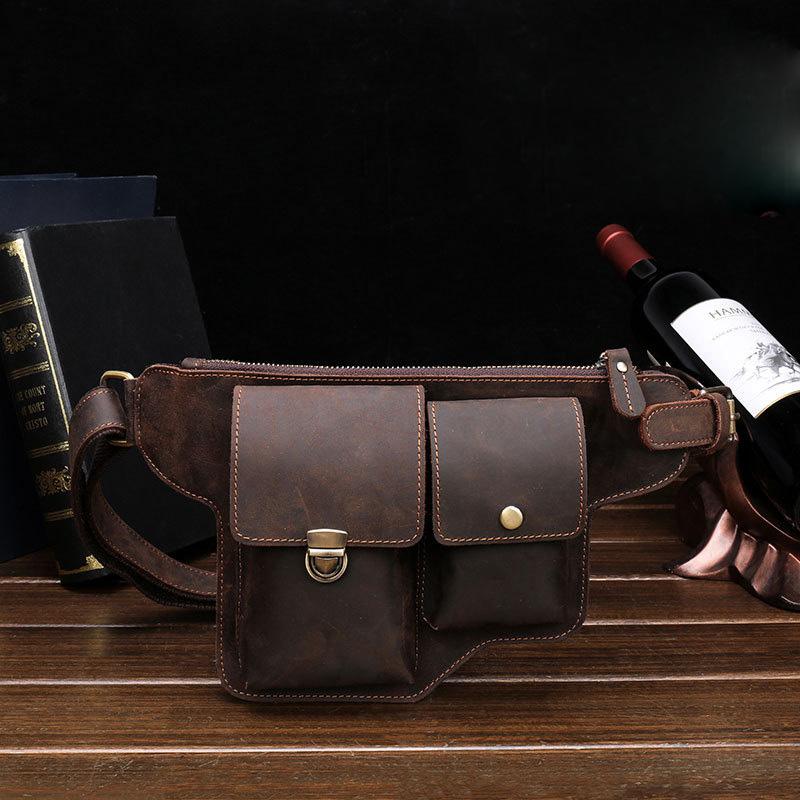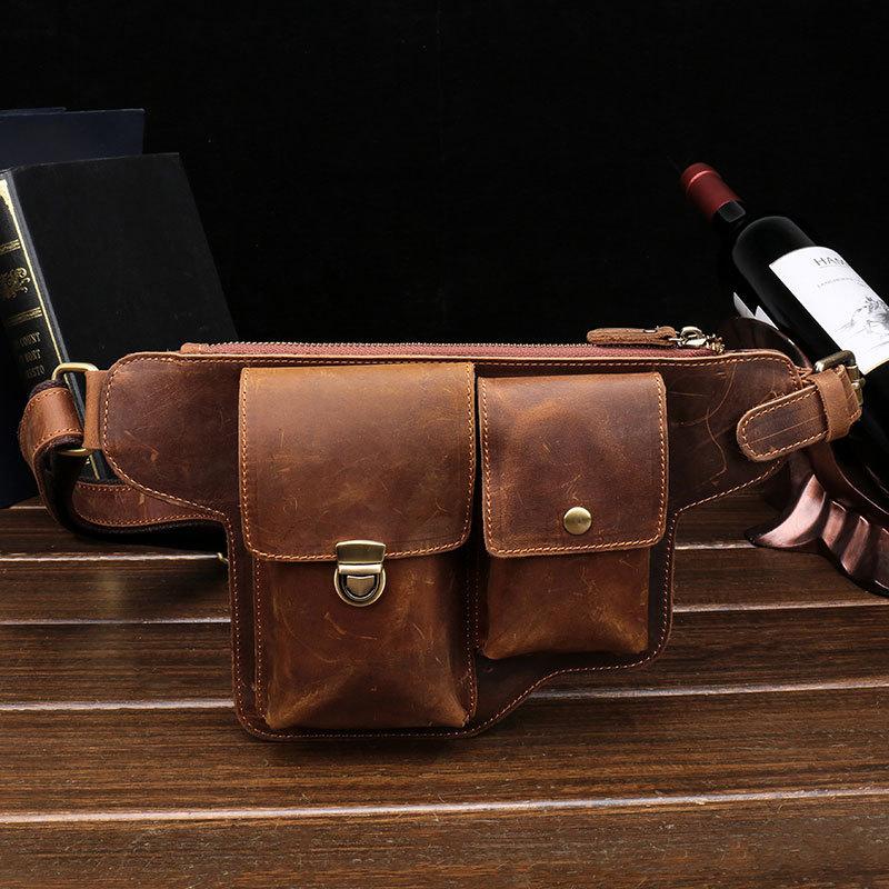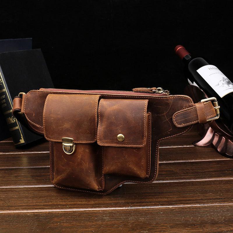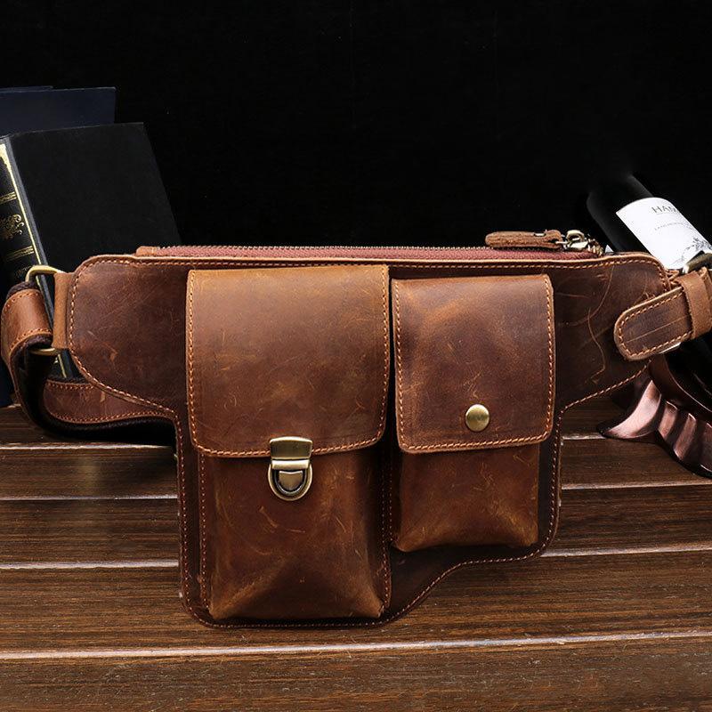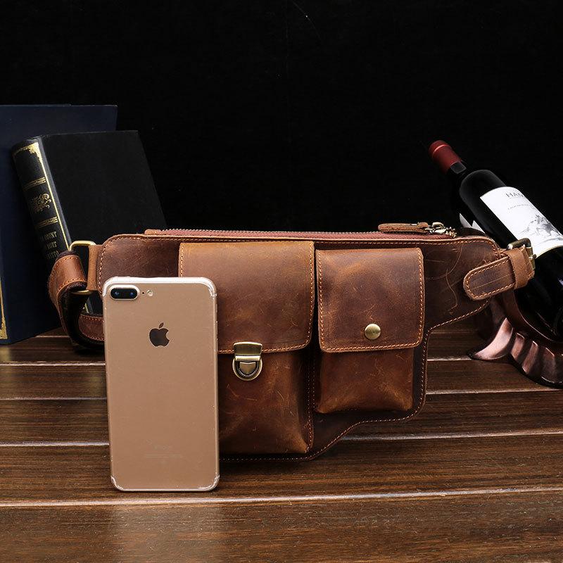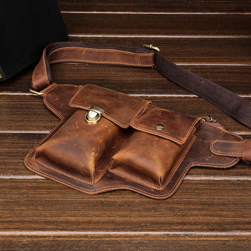 Design: Classy Vintage LEATHER MEN'S Cell Phone Holster Belt Bag Belt Pouch Waist Bag For Men