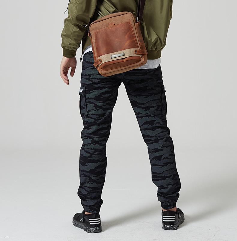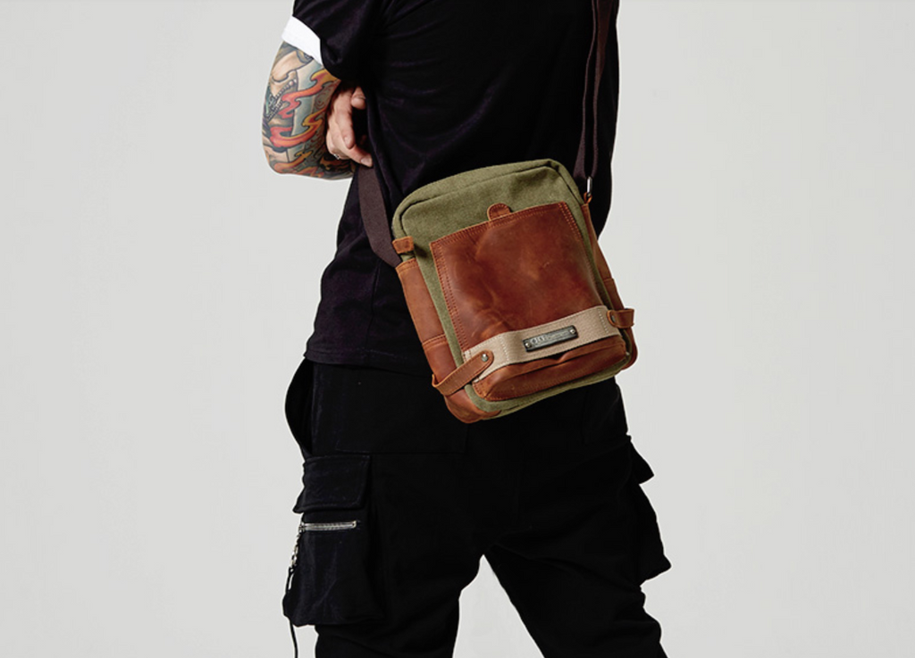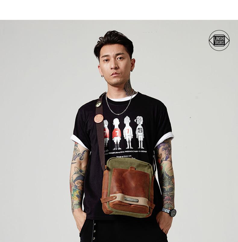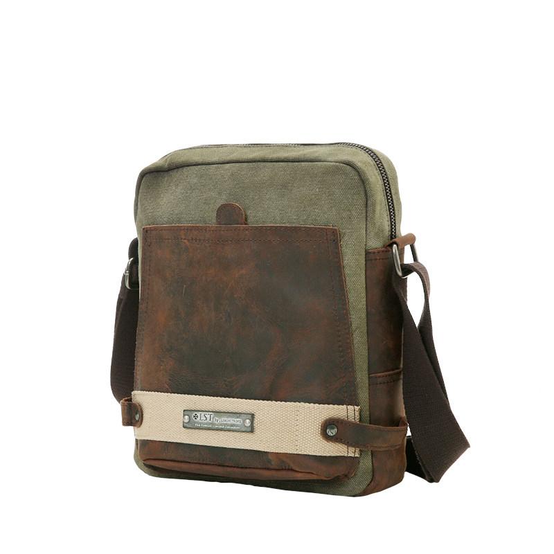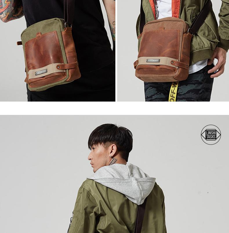 Design: Coffee Canvas Leather Mens Side Bag Messenger Bags Army Green Canvas Courier Bag for Men