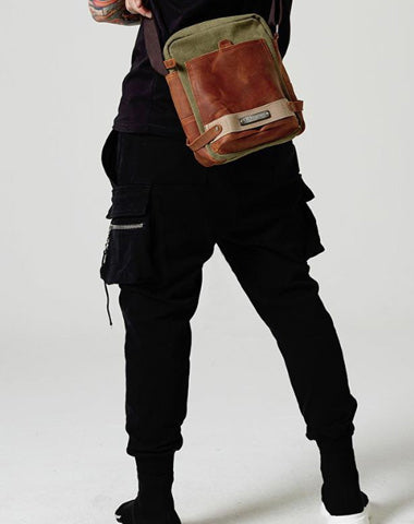 Style: Coffee Canvas Leather Mens Side Bag Messenger Bags Army Green Canvas Courier Bag for Men