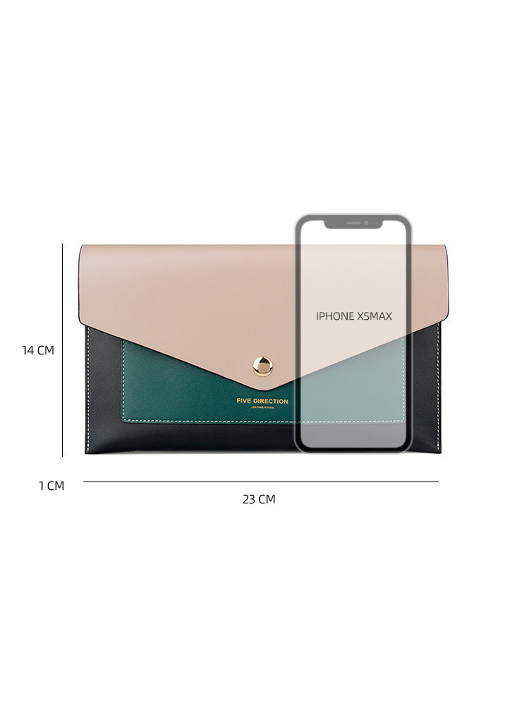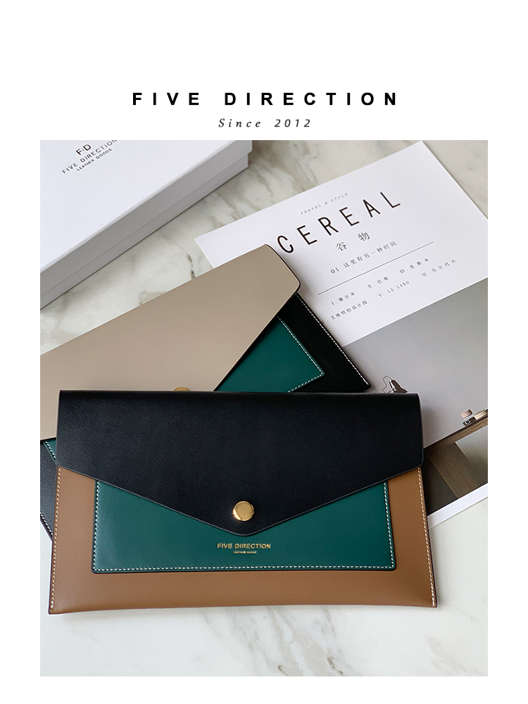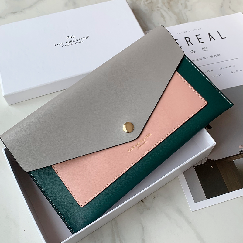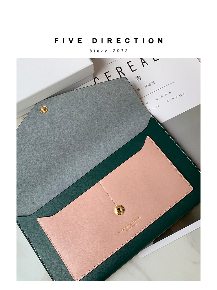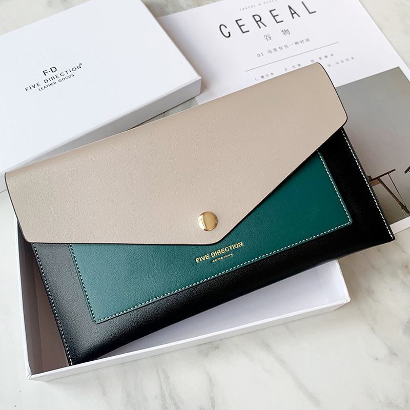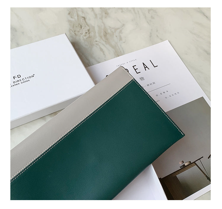 Design: CONTRAST COLOR Khaki Envelope Leather Womens Slim Clutch Purse Checkbook Wallet for Women