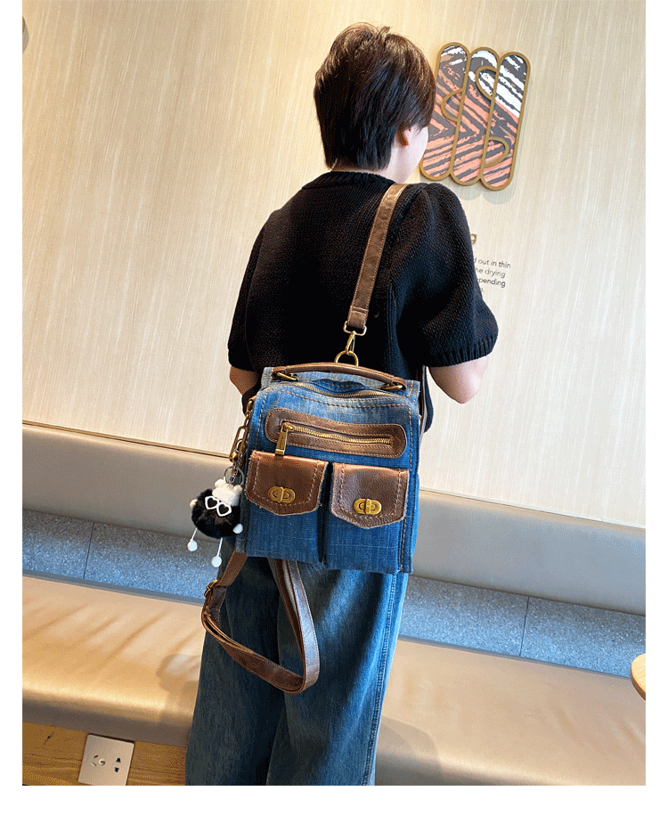 Style: Convertible Denim Mini Backpack Bag Crossbody Bag Blue Convertible Denim Handbag Shoulder Bag