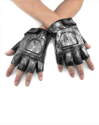 Style: Cool Ancient Silver Mens Black Leather Half-Finger Gloves Rock Gloves Black Motorcycle Gloves Biker Gloves For Men